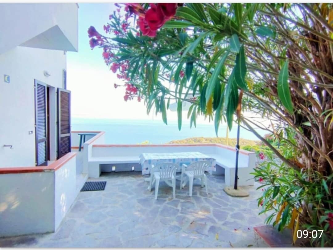 Appartamento, con incantevole vista sul mare, situato al piano terra di una villa, nel cuore della macchia mediterranea del parco naturale di Fetovaia. Composto da ampio soggiorno con zona cottura e divano letto matrimoniale, camera matrimoniale, bagno con doccia. Provvisto di aria condizionata. Confortevole spazio esterno con tavolo e ombrellone, zona relax con lettini e incantevole seduta per colazione e aperitivi. Accesso al mare tramite scale/sentiero (100 metri)