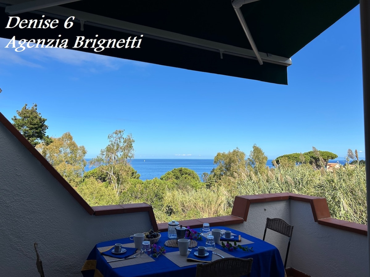 L'appartamento è composto da due camere da letto, bagno con doccia, zona giorno con cucina attrezzata e quinto posto letto. Ampio spazio esterno, arredato con tavolo in ferro giallo, sedie in midollino, lettini per prendere il sole. Il patio veranda è coperto. Posto auto privato. La casa è indipendente, circondata dal verde ed ha bella vista sul mare e la Corsica. La casa è gialla con le persiane verdi. L'arredamento è curato ed accogliente.