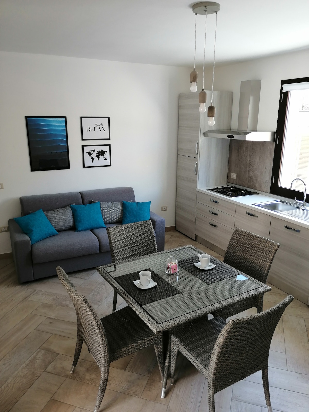 Apartment in Portoscuso Sardinia (Italy). Recently built semi-basement in a quiet residential area. Being a semi-basement it is still bright, spacious and modern, 10 minutes walk from the beach. Camping cot for children available on request. Now also with outdoor dining area and barbecue. My family and I live in the house above the apartment, however you are completely independent and have your privacy.