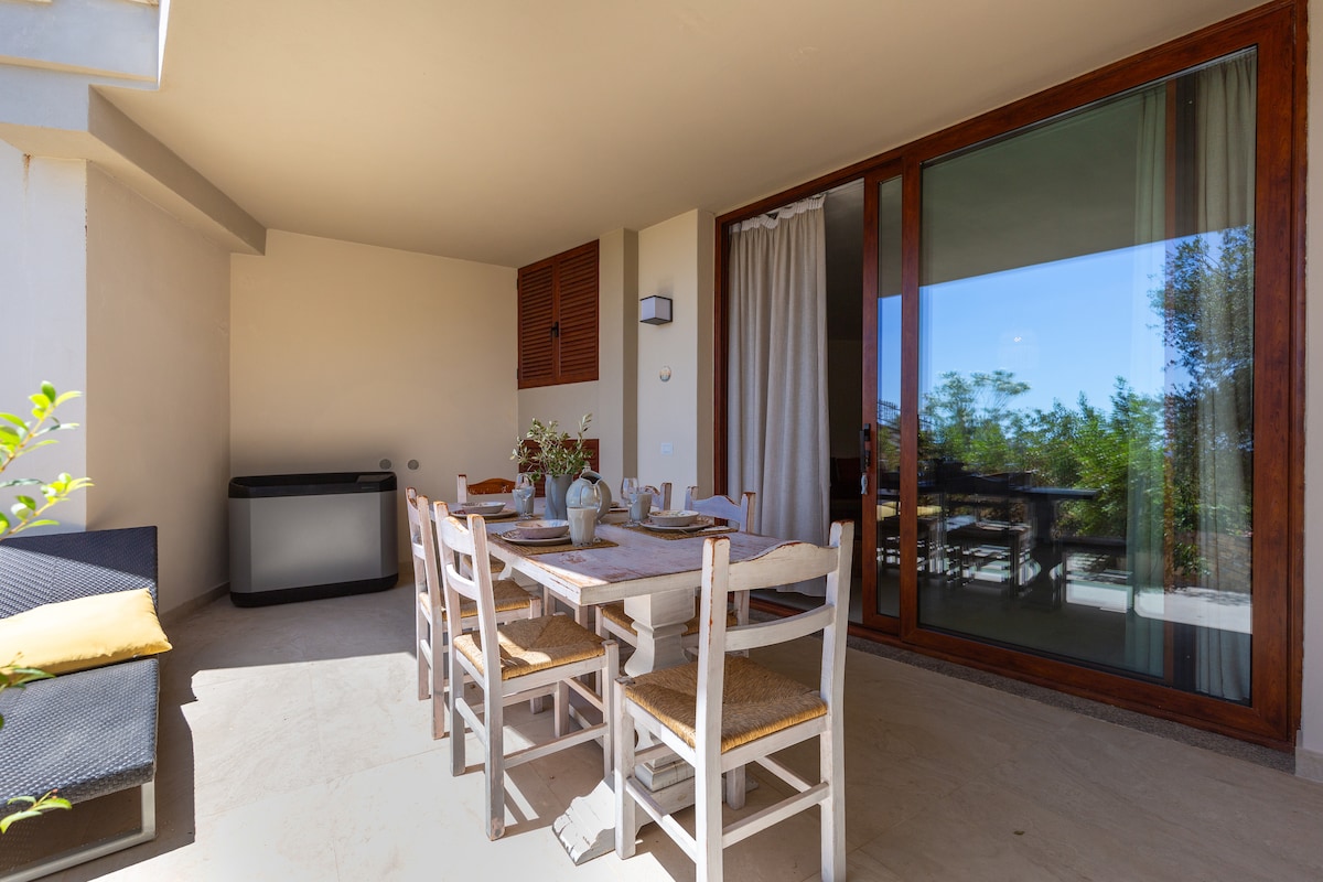 Panoramicissimo appartamento a pochi metri dal mare. Ideale per gli amanti della tranquillità, della natura, macchia mediterranea e per godere appieno della bellezza del mare. Cucina abitabile, due camere matrimoniali, di cui una con bagno privato, 1 camera con due letti, bagno con doccia. Patio coperto attrezzato per consumare i pasti e soggiornare all'aperto. Doccia esterna, barbecue portatile, posto auto all'interno della proprietà.