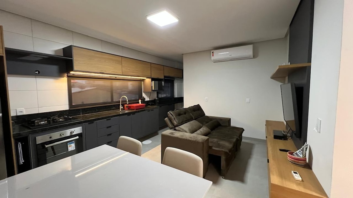 Relaxe com toda a família nesta acomodação tranquila. Apartamento completo, recém inaugurado. Com academia, área gourmet externa e elevador. Muito bem localizado, ficando a poucos metros da orla da cidade, centro e melhores restaurantes da região. Dispõe de ar condicionado, TV, Wi-Fi, cozinha completa, persianas tipo backout, elevador, academia, área gourmet. O apartamento possui um quarto com uma cama queen e uma bicama de solteiro. Além disso, dispõe de armador de rede no quarto.
