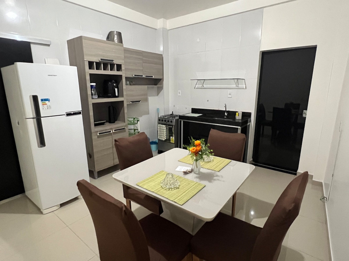 Espaço inteiro, ideal pra quem busca comodidade, a poucos passos do rio Tapajós. Localizado em área comercial, em frente ao Mercadão 2000, acesso fácil à todas as linhas de ônibus, farmácias, caixas eletrônicos, lotérica, restaurantes e supermercado. Quarto para até 02 pessoas com central de ar Internet Wifi 390 Mbps Cozinha equipada Área externa privativa ventilada Sala com ventilador portátil, livros e toca-discos e discos raros