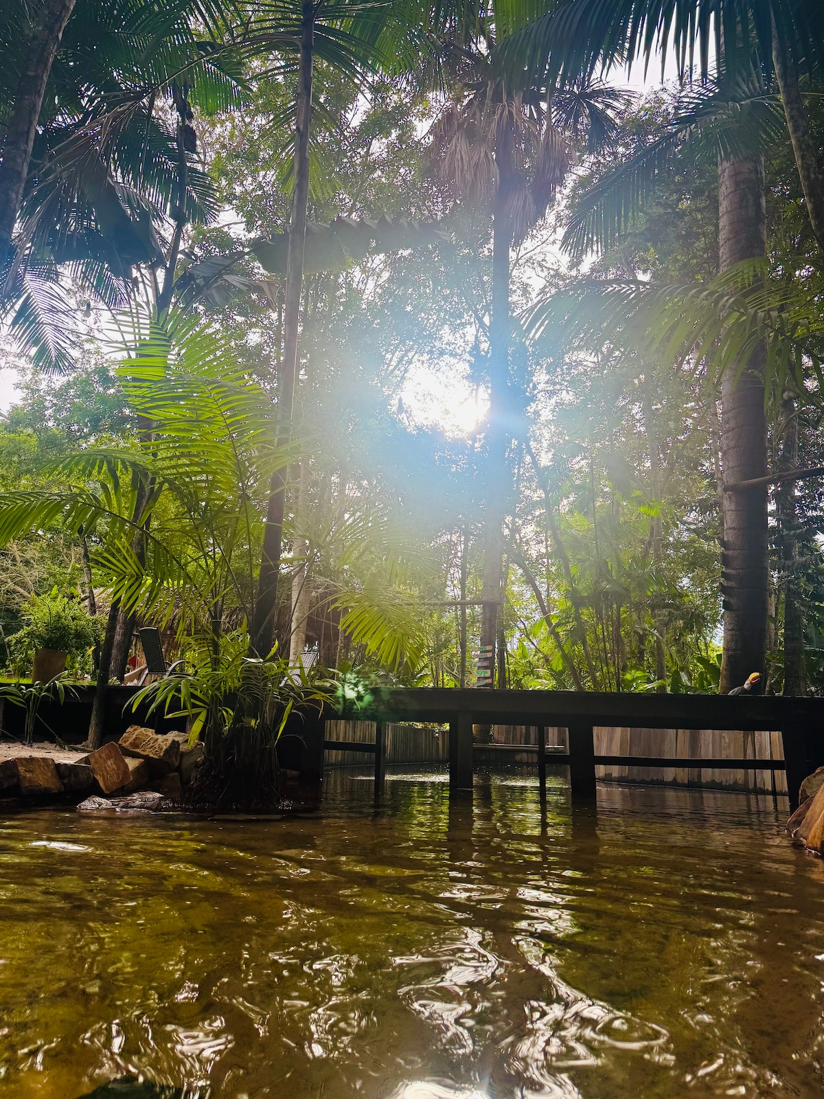 Nossa casa está localizada no bairro Jacundá 2, em Alter-do-chão, às margens do Lago do Jacundá e ao lado da praia Jacundá 2. Um santuário de tranquilidade, com uma piscina natural privativa de águas serenas para momentos de paz e contemplação. Ao abrir as portas, oferecemos não apenas um lugar para ficar, mas uma experiência completa de conexão com a natureza e relaxamento. Um lugar confortável, mas que não deixa de te fazer sentir realmente na Amazônia.