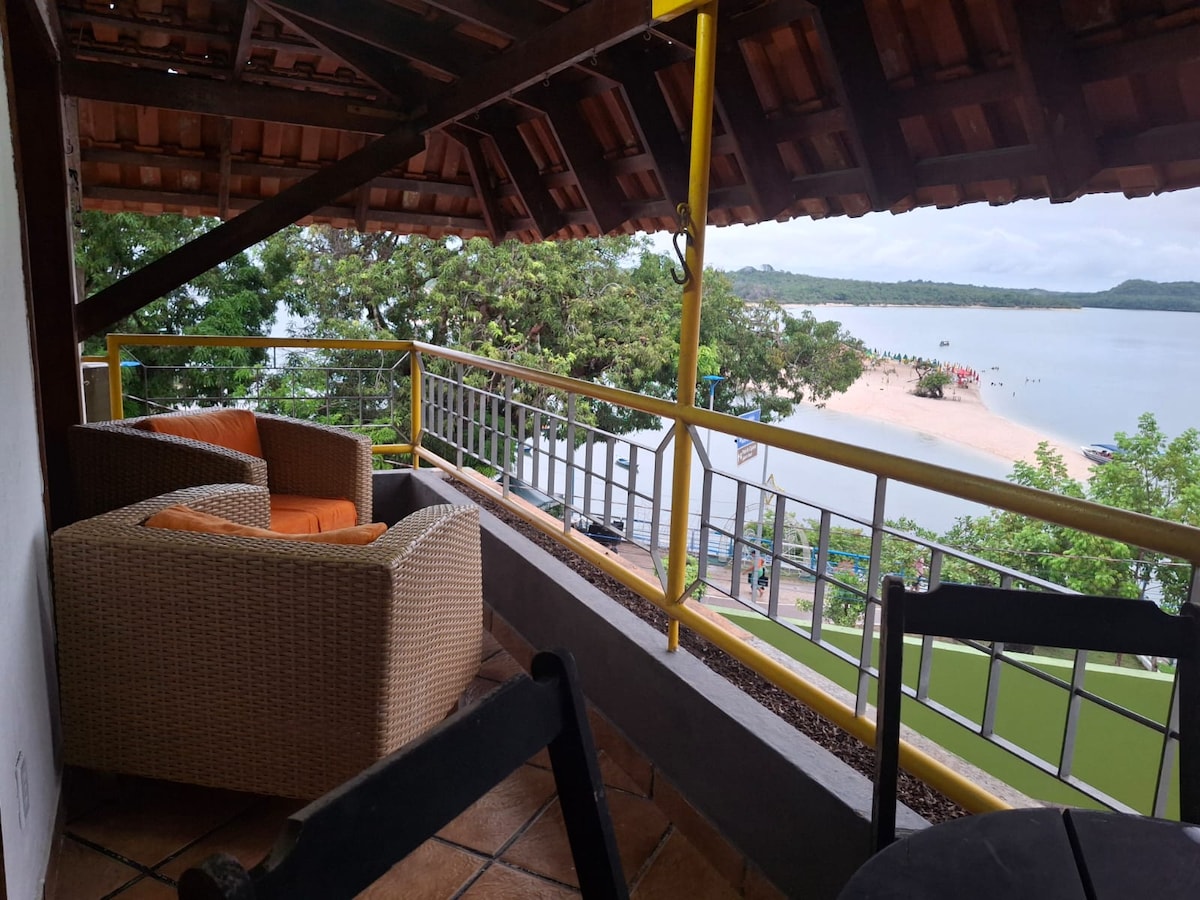 Excelente localização no centro da charmosa e rústica vila de Alter do Chão, o 'Caribe Amazônico' Condomínio novo, com piscina, espaço de churrasqueiras, playground, portaria 24h Suíte 1: 1 cama de casal, ar condicionado, smart TV, vista aérea de lazer do condomínio Suíte 2: 1 cama de casal, 1 beliche, 1 cama auxiliar, smart TV, ar condicionado, linda vista para o Rio Tapajós Sala/cozinha: 1 sofá-cama, ar condicionado, smart TV, cozinha completa de equipamentos 1 vaga de garagem coberta