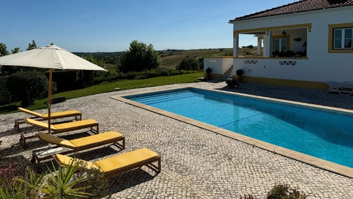 A TRUE RETREAT WITH ALL THE MODERN AMENITIES. VERY PRIVATE CONTEMPORARY STYLE VILLA. OPEN PLAN LIVING ROOM WITH FLOOR-TO-CEILING WINDOWS SO YOU CAN ENJOY THE UNIQUE VIEWS OF THE SURROUNDING FARMLAND WITH ANCIENT OLIVE TREES. ON THE OUTSIDE, AN ELEVATED INFINITY POOL AND A BIG DINING TABLE TO ENJOY THE AMAZING SUNSET. LOCATED IN A SMALL VILLAGE, 45 MIN AWAY FROM LISBON, AND 6 MILES FROM SANTARÉM. YOU CAN ALSO VENTURE INTO A LOVELY HORSE RIDE OR WINE TASTING IN ONE OF THE SURROUNDING PROPERTIES.