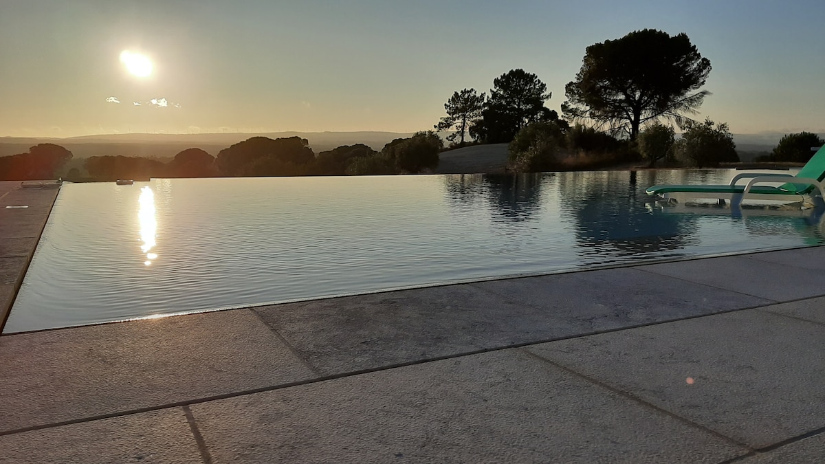 A TRUE RETREAT WITH ALL THE MODERN AMENITIES. VERY PRIVATE CONTEMPORARY STYLE VILLA. OPEN PLAN LIVING ROOM WITH FLOOR-TO-CEILING WINDOWS SO YOU CAN ENJOY THE UNIQUE VIEWS OF THE SURROUNDING FARMLAND WITH ANCIENT OLIVE TREES. ON THE OUTSIDE, AN ELEVATED INFINITY POOL AND A BIG DINING TABLE TO ENJOY THE AMAZING SUNSET. LOCATED IN A SMALL VILLAGE, 45 MIN AWAY FROM LISBON, AND 6 MILES FROM SANTARÉM. YOU CAN ALSO VENTURE INTO A LOVELY HORSE RIDE OR WINE TASTING IN ONE OF THE SURROUNDING PROPERTIES.