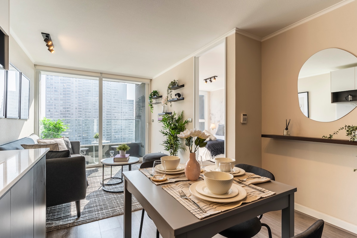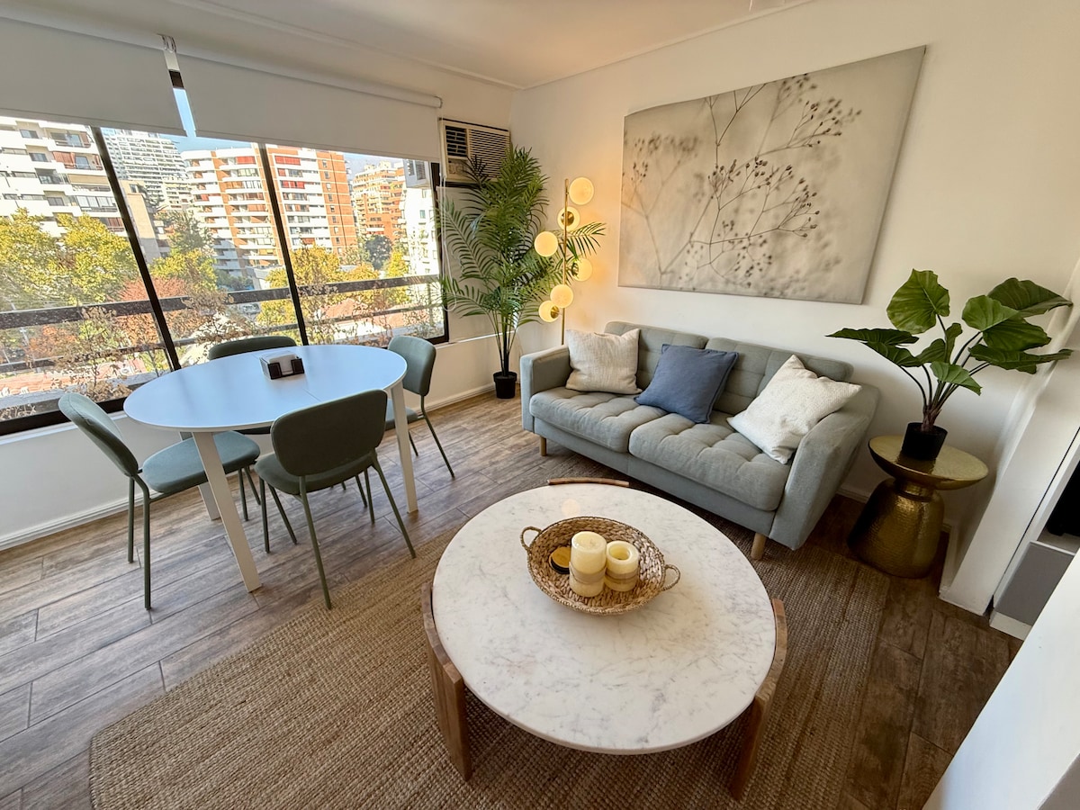 Wake up in the exclusive El Golf district. Spacious, bright, and fully equipped apartments. Featuring three bedrooms (master en-suite), an open-plan living and dining area, a fully equipped kitchen, and a separate lounge ideal for a home office. Enjoy fully autonomous access, high-speed WiFi, and impeccable cleaning standards. Located just steps from the Metro, and surrounded by top restaurants, cafés, parks, and everything you need to move around Santiago with ease.