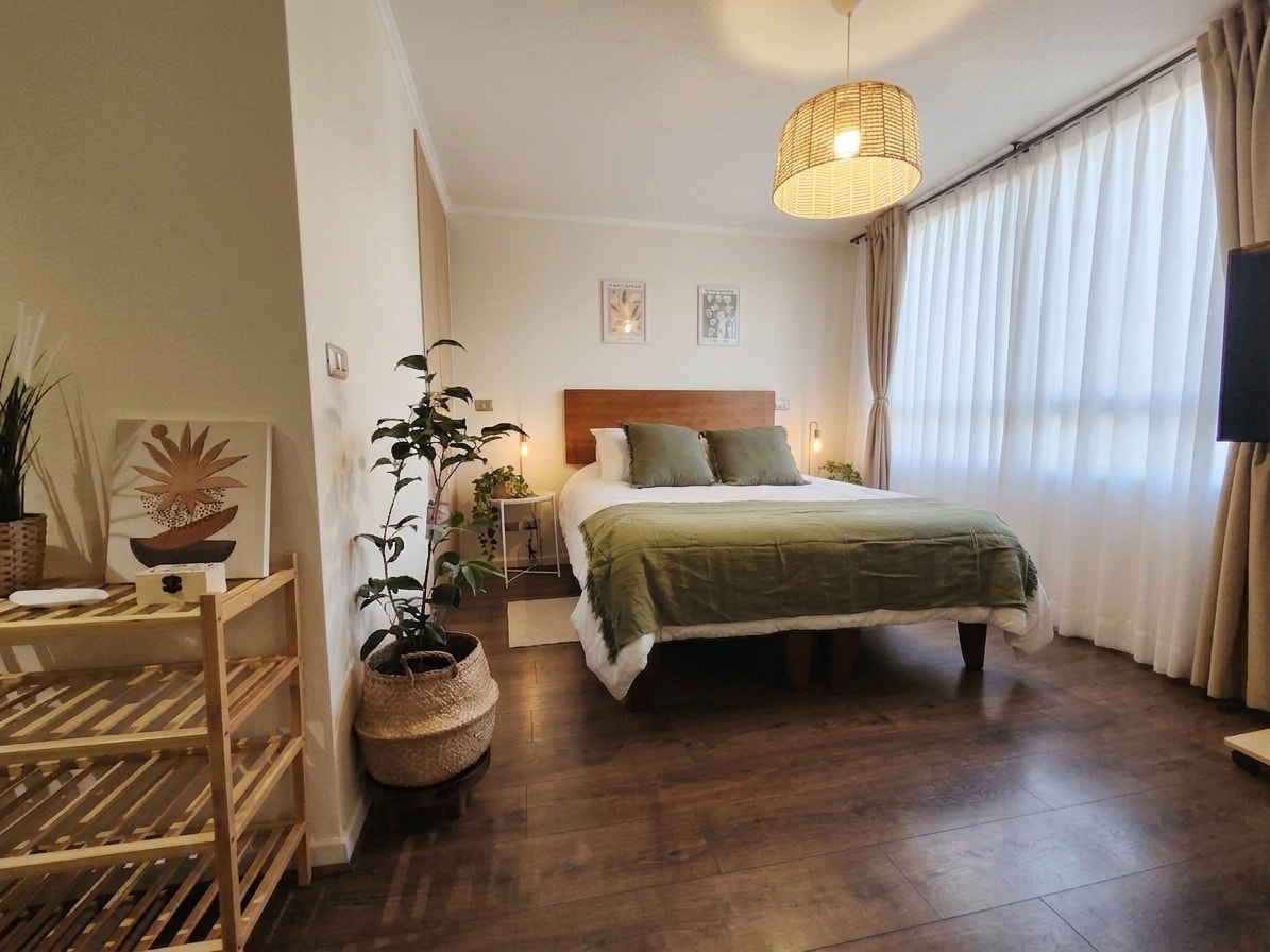Disfruta de un moderno depto de 2 habitaciones y 2 baños con un encantador patio privado lleno de plantas. Ideal para desayunar al aire libre, relajarte o disfrutar una copa al atardecer. Estás a pasos de tiendas y restaurantes de la exclusiva Avenida Isidora Goyenechea y cerca del Costanera Center. Cuenta con cocina equipada, aire acondicionado, Smart TV y seguridad 24/7. Perfecto para escapadas, parejas o viajeros que buscan diseño, ubicación y un rincón verde en medio de la ciudad.