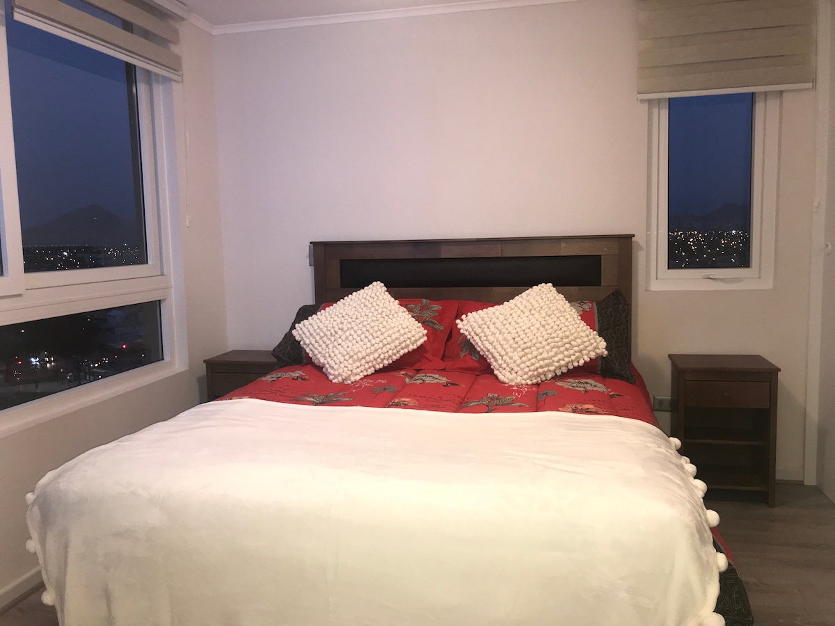 A pocas cuadras del Mall Costanera Center ubicado a pasos del Metro los Leones Este depto con cocina completa ollas , utensilios Loza , cubiertos Microonda Horno Hervidor de agua Tostadora eléctrica Papel Nova , Los dos baños tienen agua caliente Papel higiénico disponible Toallas si los huésped lo solicitan Todas las camas están con sábanas y frazadas Y fundas para las almohada Muy cerca de restaurantes y centro comerciales , farmacias y supermercados