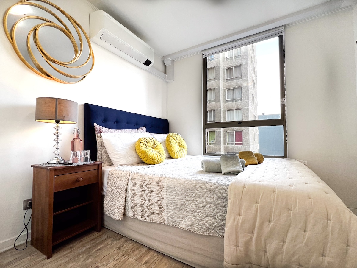 Cómodo y funcional, en el corazón de San Carlos de Apoquindo en Las Condes, a pasos de Clínicas, Universidad y Estadio. Movilización a la puerta. Limpieza y Calidez, atendido por sus dueños. Capacidad hasta 2 adultos y un niño pequeño. Desayuno incluído. Centro comercial, restaurante y cine se acceden caminando. Querrás volver siempre. Excelente evaluación en medios donde estamos. Te esperamos.
