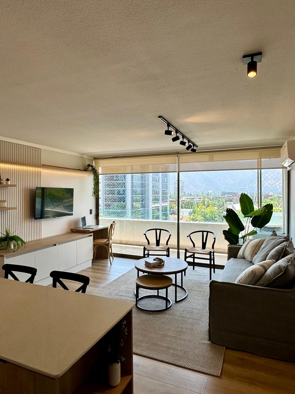 Departamento de Alto Standard ubicado en excelente sector de Santiago, a pasos del Parque Arauco, restaurantes y centros comerciales, y próximo a clínicas, zonas de interés turístico y agencias de ski. Vivirán como locales, con impresionantes vistas a la Cordillera de Los Andes y todas las comodidades para hacer que su estadía sea inolvidable. El departamento está pensado como un refugio elegante e inspirador. Se sentirán como en casa y disfrutarán de un espacio acogedor y relajante.