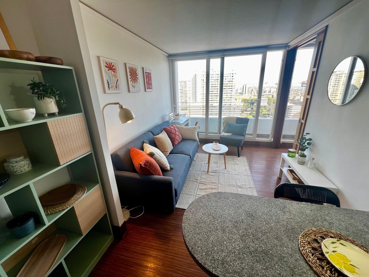 Elegante departamento situado en el corazón de Providencia. Con una impresionante vista a la cordillera de los Andes y al icónico Cerro San Cristóbal. Ubicado a solo pasos del metro Los Leones (Línea 1), mercado urbano tobalaba MUT y del Costanera Center, el centro comercial más grande de Chile. Rodeado de una amplia gama de restaurantes y bares. Ideal tanto para estancias cortas como largas, te ofrecemos un refugio perfecto para explorar Santiago o para relajarte después de un día ajetreado.