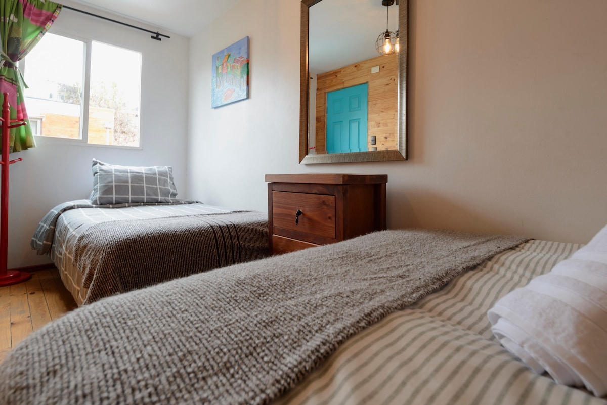 Habitación compartida mixta en el corazón de Providencia! La habitación tiene 5 camas, el precio es por persona Estamos muy cerquita de estaciones de metro y lugares tan emblematicos como cerro San Cristobal, Costanera Center o el Barrio Bellavista. El hostel cuenta con areas comunes como cocina, sala deestar, sala de TV para que conozcas otros viajeros o te relajes 😁 Tenemos wifi en todas las áreas
