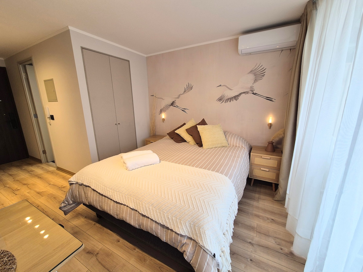 ¿Buscas estilo, descanso y buena ubicación? Este moderno y cálido estudio tiene todo para una estadía inolvidable en Santiago. Está full equipado para 2 personas: ♨️ Aire acondicionado 🍴 Cocina full equipada 💻 Excelente Wifi y Zona de trabajo ✨ Decoración boutique 🥩 Parrilla a gas 🏓 Mesa de ping pong 🗻 Vista a la Cordillera 📚 Libros y juegos de mesa ¡Tenemos una guía local con recomendaciones para que disfruten al máximo de esta increíble ciudad!