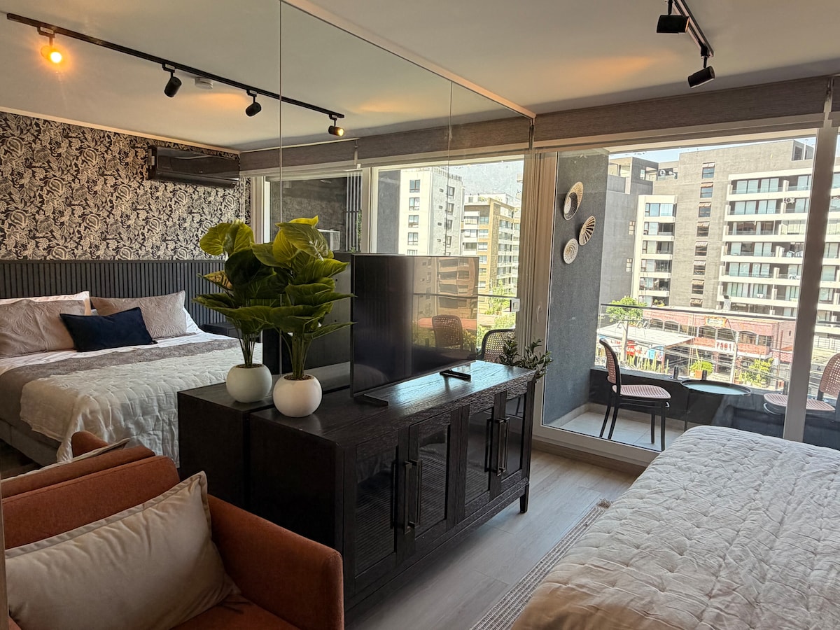 This apartment is ideal for relaxing and enjoying the city. It's centrally located, between the Santiago Centro and Providencia districts, one of the best locations in the city. It offers beautiful views of San Cristóbal Hill and the Sky Costanera. It's just a 3-minute walk from the metro and buses. Includes: Free Wi-Fi, a fully equipped kitchen, sheets and towels included, a large bed with a large Smart TV. Self-service entrance with a key, allowing you to arrive at any time.