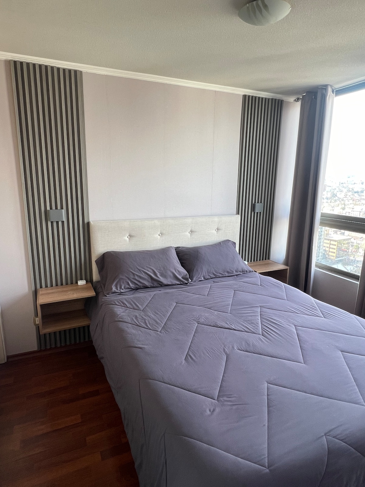 Encantador departamento en el corazón de Santiago con una impresionante vista panorámica del centro de la ciudad. Disfruta de los rascacielos iluminados por la noche y de paisajes urbanos durante el día. Este acogedor espacio cuenta con comodidades modernas, una decoración elegante y todas las comodidades necesarias para una estancia inolvidable. Desde el balcón privado, podrás deleitarte con vistas panorámicas que abarcan desde la cordillera hasta los puntos emblemáticos de la ciudad.