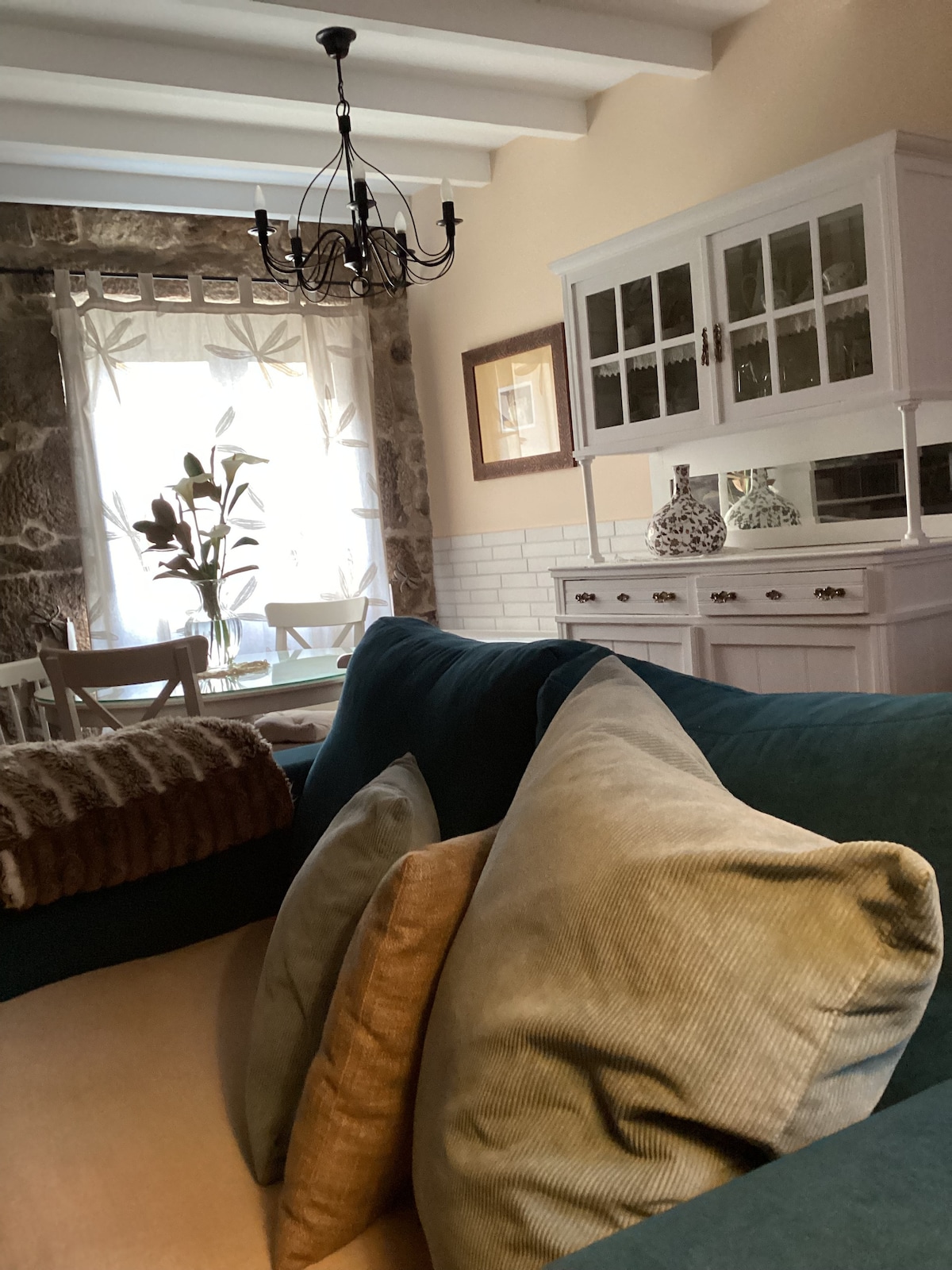 Casita de piedra restaurada a menos de 10 minutos de Santiago, 25 de Noia, 40 de Sanxenxo o Ribeira y 1 hora de Finisterre. Capacidad para, máximo, 4 personas, habitación con cama de 160 cm y altillo abuardillado con cama de 150 cm. Baño con ducha, acumulador de 100 litros. Cocina equipada, menaje, inducción, nevera, tostadora, cafetera, horno, etc. Terraza privada con sillas, mesa, barbacoa y un hórreo. Aparcamiento privado dentro de la propiedad, y exterior. Estufa de leña + AACC.