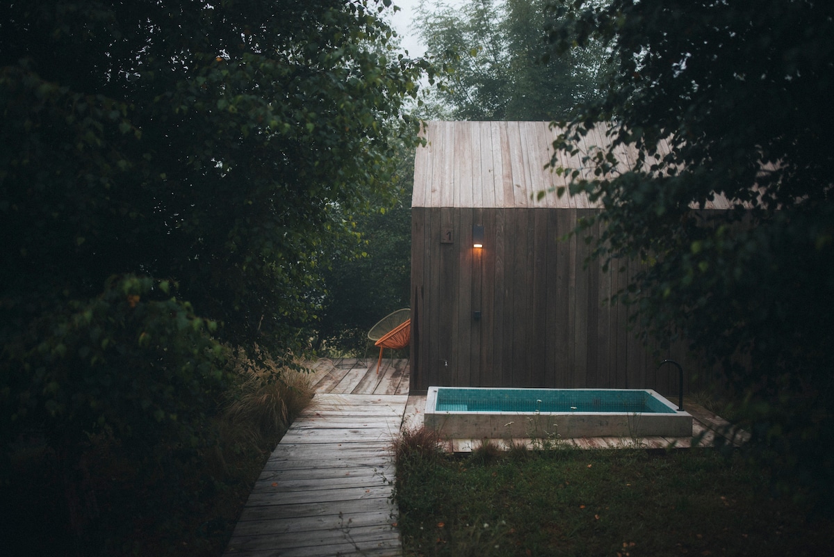 La cabaña se sitúa en un hermoso paraje, a solo 10 minutos de Santiago de Compostela, en la que pasar unos tranquilos y románticos días rodeados de naturaleza al lado del río Ulla, en un nuevo concepto de turismo rural. Con capacidad para 2 personas* en 27 funcionales m2, repartidos en baño, dormitorio, cocina, zona de estar, sofá cama, TV, Wi-Fi, aire acondicionado y una terraza exterior bajo abedules, hayas, fresnos….