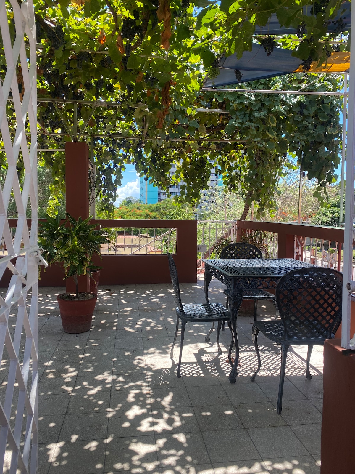 Habitación con entrada independiente y Wifi 24 horas en la 2da planta de nuestra casa con llave privada para los huéspedes, cuenta con 1 habitación para 3 personas con 2 camas, baño privado con agua caliente/fría, aire acondicionado, cocina, terraza privada al aire libre y cubierta de una mata de uva. Se encuentra en un barrio tranquilo de nuestra ciudad, frente al Teatro Heredia y a unos 200m de la Plaza de la Revolución, igualmente del Centro Comercial La Gran Piedra.