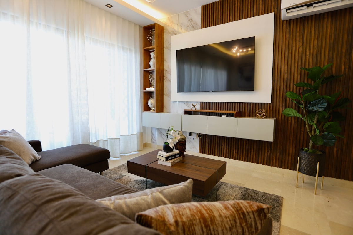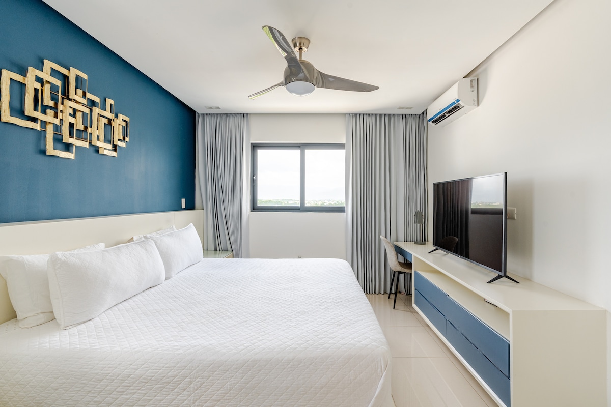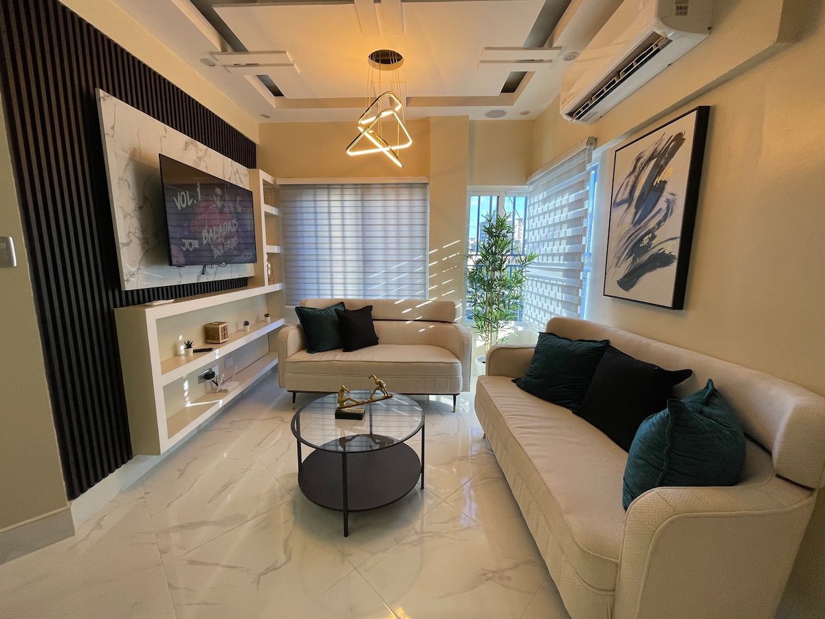 This is a beautiful exclusive suite on the 12th level of the tower with a panoramic view. The concept is modern and luxury . Led iluminated ceilings. Air conditioning in both the living room and bedroom offer a pleasant climate. A very comfortable bed for a good night sleep . 50 -Inch TVwith NETFLIX,WiFi,cable and other amenities are included. Located in one of the most prestigious and secure areas .Whether it’s a business trip or a relaxation vacation, this will be the perfect getaway.