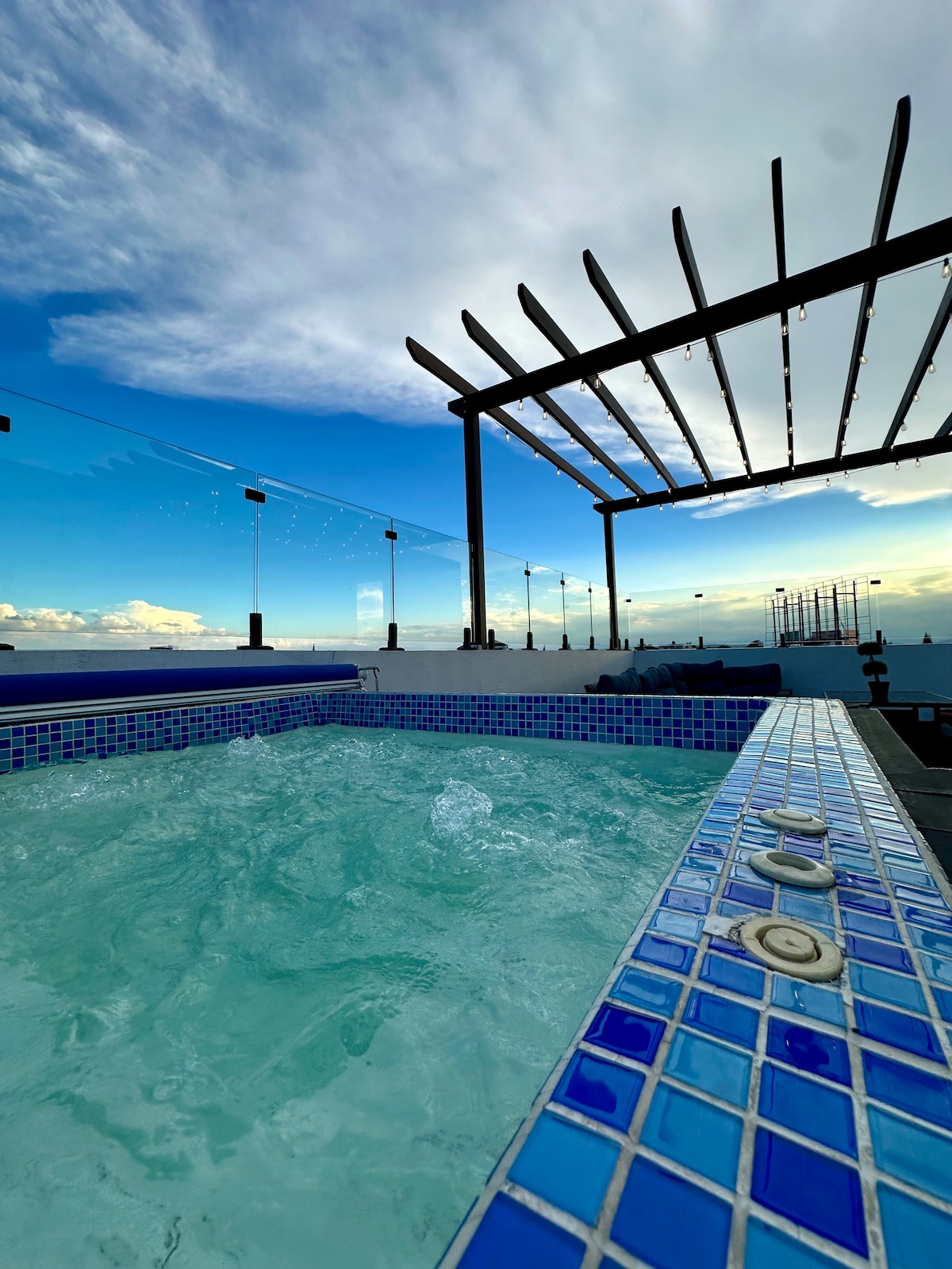 靠近机场的百万顶层公寓,带私人按摩浴缸
