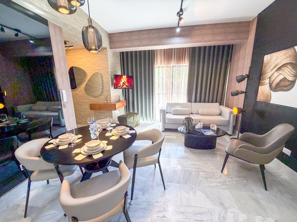 Perfect for groups and families, this elegant accommodation is ideally located near Santiago International Airport (just 8 minutes away). Enjoy easy access to vibrant restaurants, supermarkets, and nightlife while still experiencing the beauty of nearby natural spaces. The apartment features: Three bedrooms: one with a king-size bed and en-suite bathroom, two with queen-size beds Two and a half bathrooms A dedicated movie-watching area in the second bedroom Two parking spaces On-site playgrounds