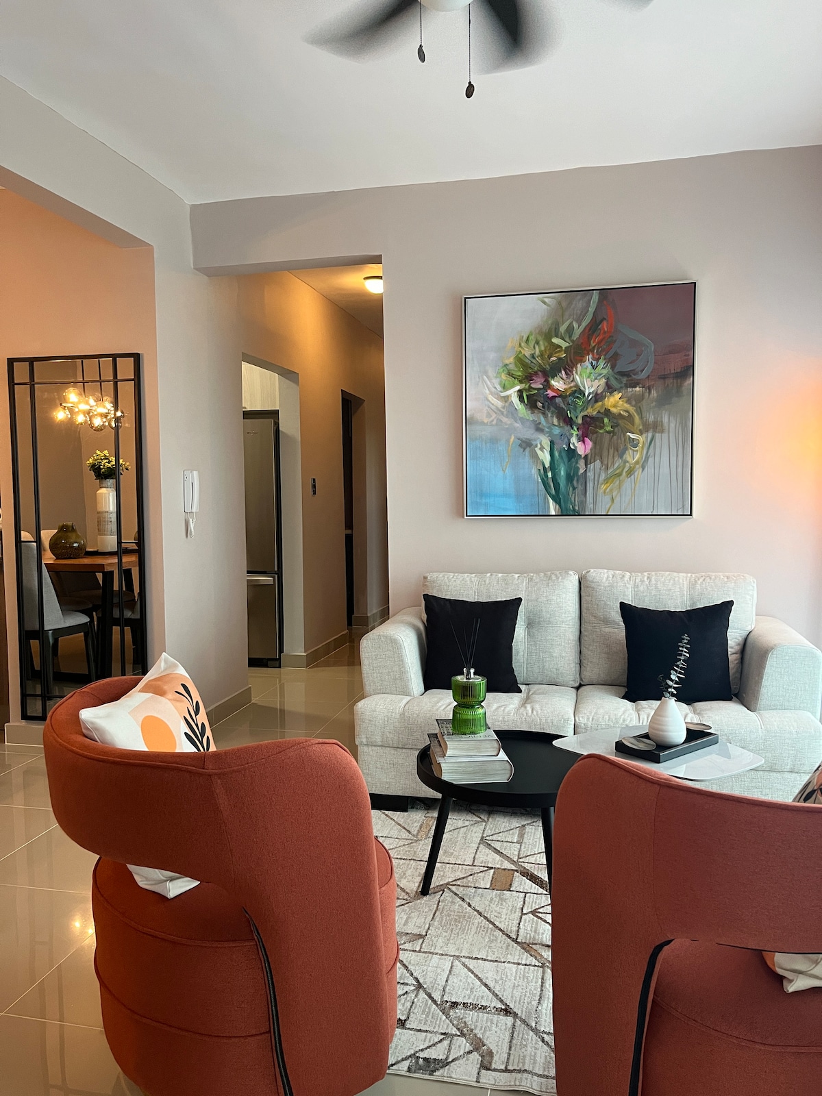 Welcome to the vibrant heart of Santiago! 🏡🔑 This modern apartment, professionally managed by Dolce Vita Property Management, is perfect for couples, families, or business travelers. Just minutes from the Monument, the airport, and Santiago’s best areas. 🛏️ Sleeps up to 7–8 guests: Master bedroom: 1 king-size bed Second bedroom: 1 king-size bed Third bedroom: 2 twin beds Living room: 1 single bed + very comfortable sofa