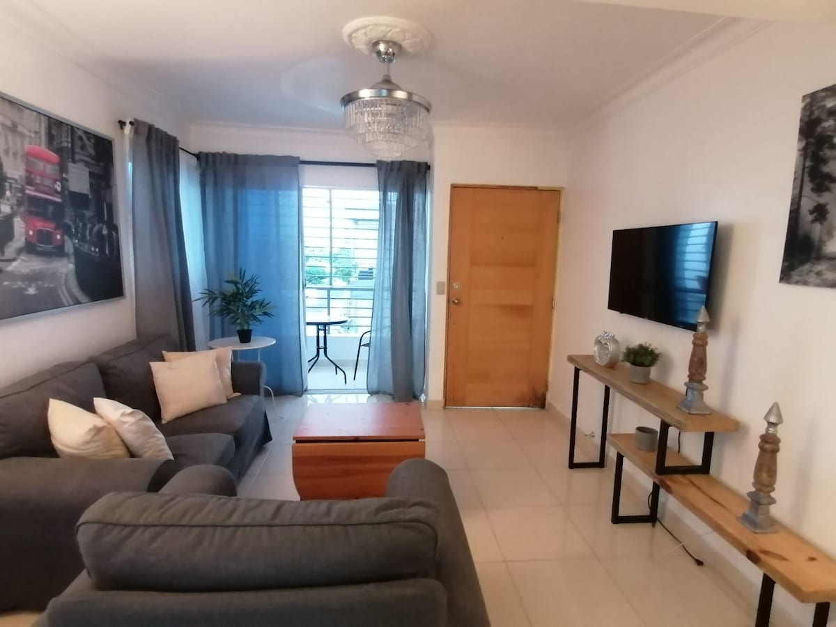 Apartment with private terrace and jacuzzi!Only for our guest. Located in Santiago. Close to Airport & Monument ! Gated Residential! 3 bedrooms, AC, wifi, heated water! Terrace has private Jacuzzi ,dominoes table and grill. Shared pool Located near center of Santiago! Apartamento con Terraza y Jacuzzi en Santiago . Cerca del aeropuerto y el Monumento! Terraza tiene jacuzzi privado solo para nuestros clientes. 3 recámaras, aire acondicionado, wifi, agua caliente! ¡Piscina compartida!