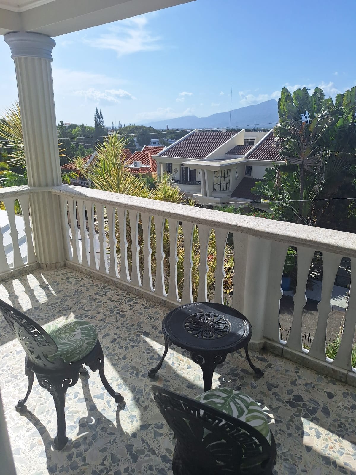 Ambiente familiar y espacioso alejado de la ciudad donde podrán relajarse y divertirse en cada área de la casa. Con un clima fresco y bonita vista. A tan solo 15 min del Aeropuerto Intl Cibao, 20 mindel Centro Histórico de Santiago y 40 min de Sosua .Con restaurant cerca como Camp David Ranch. alojamiento para 6 huéspedes camas, balcones con vista a la montaña, área de cocina, comedor y sala. En el patio cuenta con BBQ, piscina bar y ducha; parqueo para 6 vehículos dentro de la propiedad.