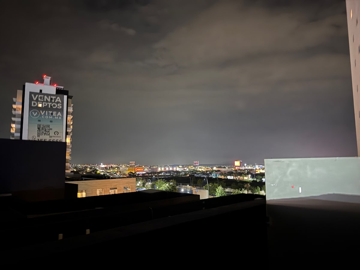 Vive una experiencia única en este acogedor y moderno departamento, perfecto tanto para viajes de trabajo como de descanso. Terraza privada con una vista espectacular de la ciudad. Estacionamiento techado y seguridad 24/7 para que estés siempre tranquilo. Ubicación privilegiada, a solo 5 minutos de Los Arcos y cerca de los principales puntos de interés, restaurantes y centros de negocios y entretenimiento. Haz de tu estancia algo especial, ya sea por unos días o una temporada. ¡Te esperamos!