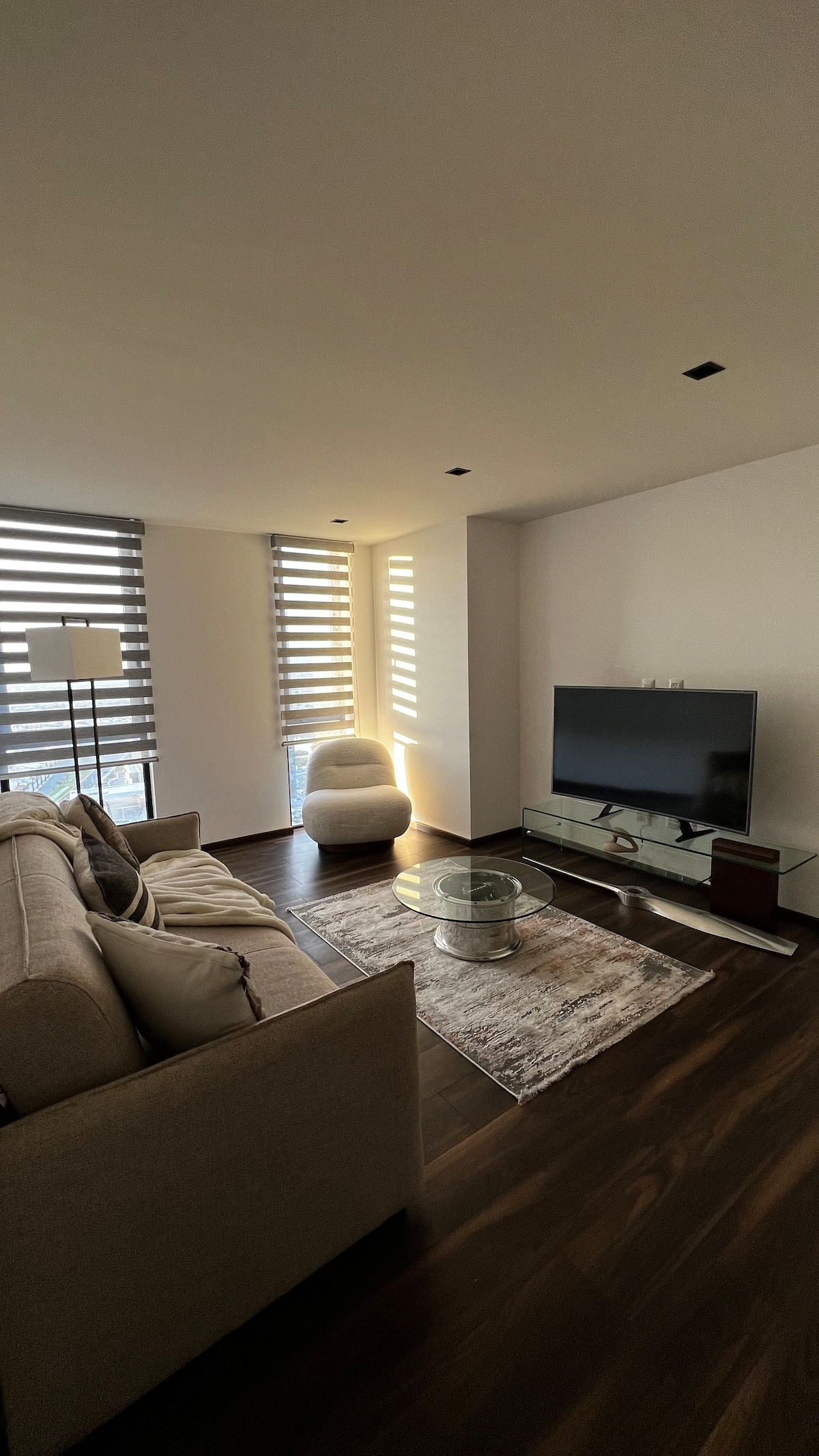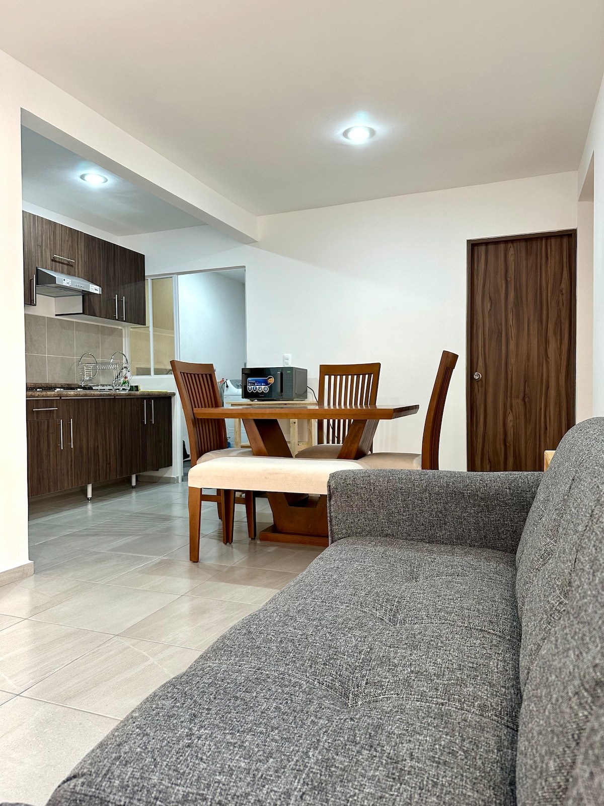 Conoce este amplio departamento de estilo contemporáneo para 6 personas donde podrás disfrutar una estancia tranquila y llena de comodidades. Hemos preparado todo para que disfrutes al máximo nuestro alojamiento. Nuestro espacio es ideal para escapadas de fin de semana o para estancias de mediano plazo donde podrás hacer Home Office. Hemos seleccionado cuidadosamente todos los detalles para que te sientas como en casa desde tu llegada y puedas disfrutar tu estancia al máximo. ¡Bienvenidos!