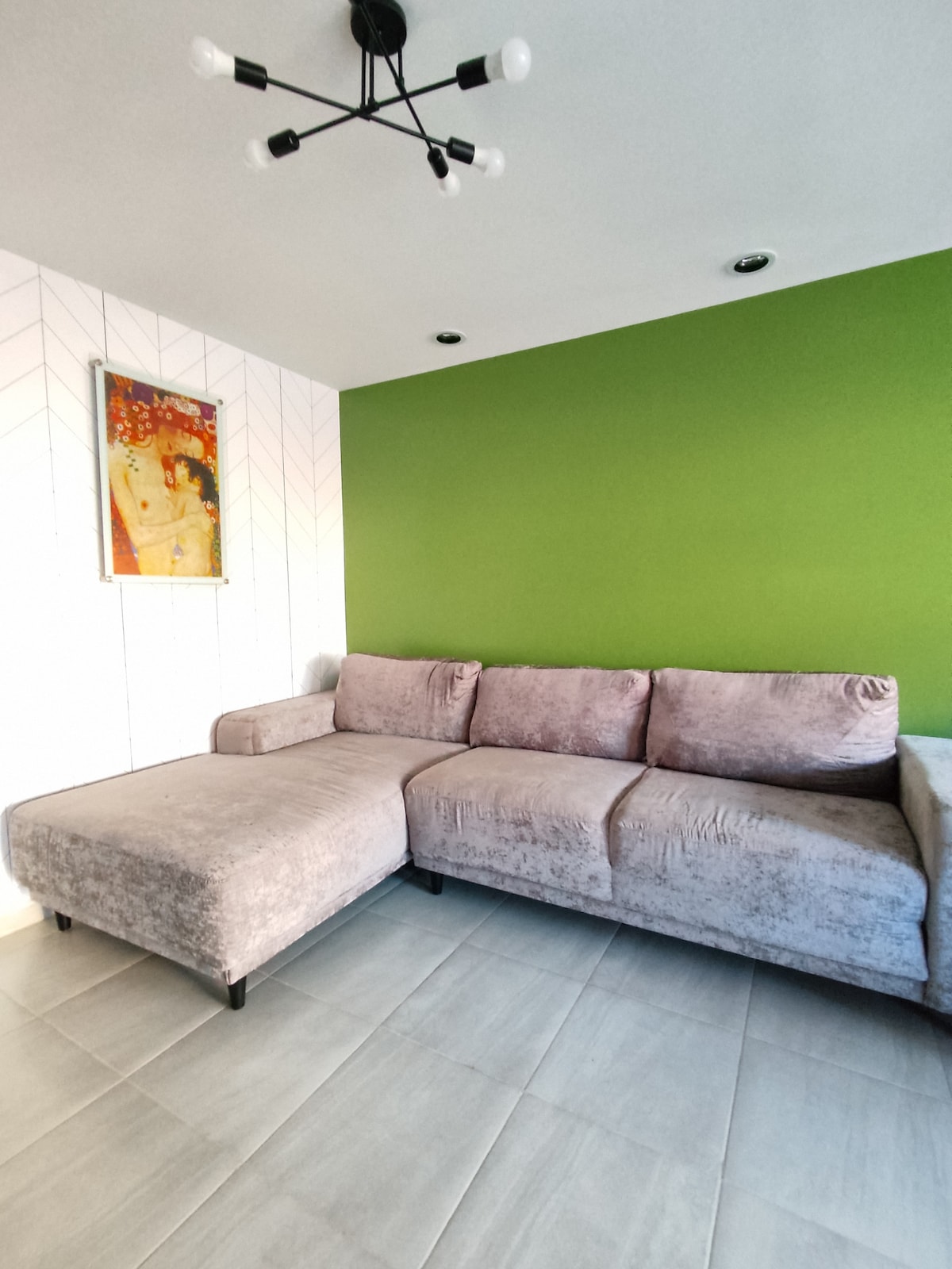 The apartment is designed for up to 4 people and is ideal for families and groups of friends. It has a loft with a king-sized bed and two individual beds in the bedroom below. There is an open wall connecting these two bedrooms, meaning that they are not two closed areas. The fully-equipped kitchen has a dining table and two armchairs by the window. It is supplied with coffee, (instant and ground), tea, oil, salt and pepper. There is a spacious closet and a nice bathroom.