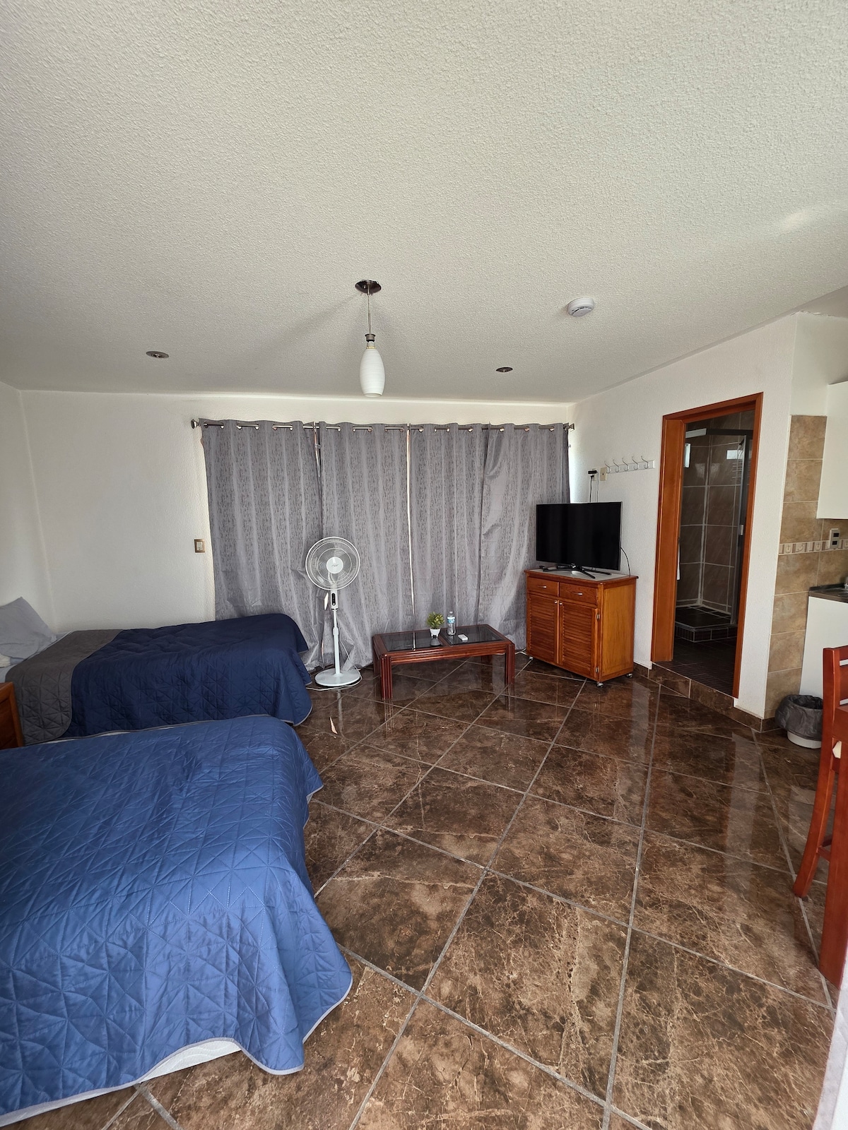 Cómodo y acogedor estudio en la cd. de Queretaro ,super equipado: WIFI, TV, sofa, cocina completa, baño completo, agua caliente y acceso independiente. Ideal para una estadía tranquila. En zona segura muy cercana de plazas: Sendero, Plaza Antea, Tiendas de autoservicio, Bancos, Transporte publico y carretera 57. A un lado de zona industrial Benito Juárez, zona industrial Jurica, zona industrial Querétaro. No sé factura por el momento.