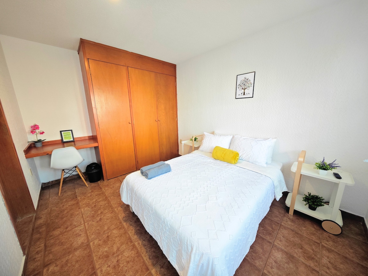 Si buscas un lugar donde descansar comodamente este es el lugar indicado! Disfruta de una recamara con todo lo escencial para un buen descanso, en una cama matrimonial con espacio para guardar tu ropa, baño incluido, un espacio de estacionamiennto y mucho mas! Se encuentra en la segunda planta con un facil accesoRecamara en planta baja con Wifi y Factura