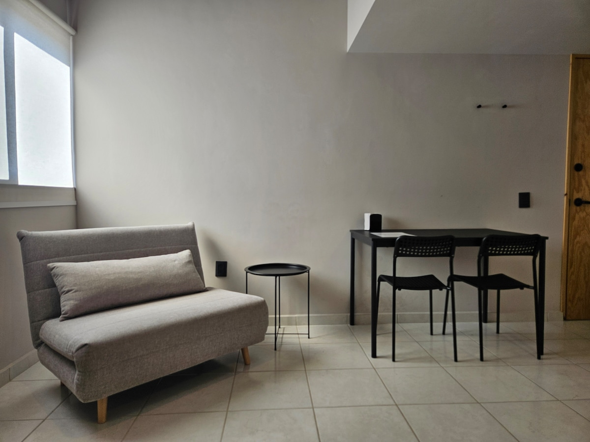 El "CUBIL" como todos nuestros espacios ha sido diseñado y hecho por nosotros para recibirte en un espacio cómodo, limpio, con todo lo necesario para una estancia corta, larga, de trabajo, de placer. El espacio cuenta con una terraza donde puedes disfrutar de la vista de la avenida o simplemente descansar para gozar del hermoso clima de Querétaro. Nos ubicamos a unos minutos caminando de los principales jardines del centro de la ciudad. Contamos con estacionamiento en las instalaciones.