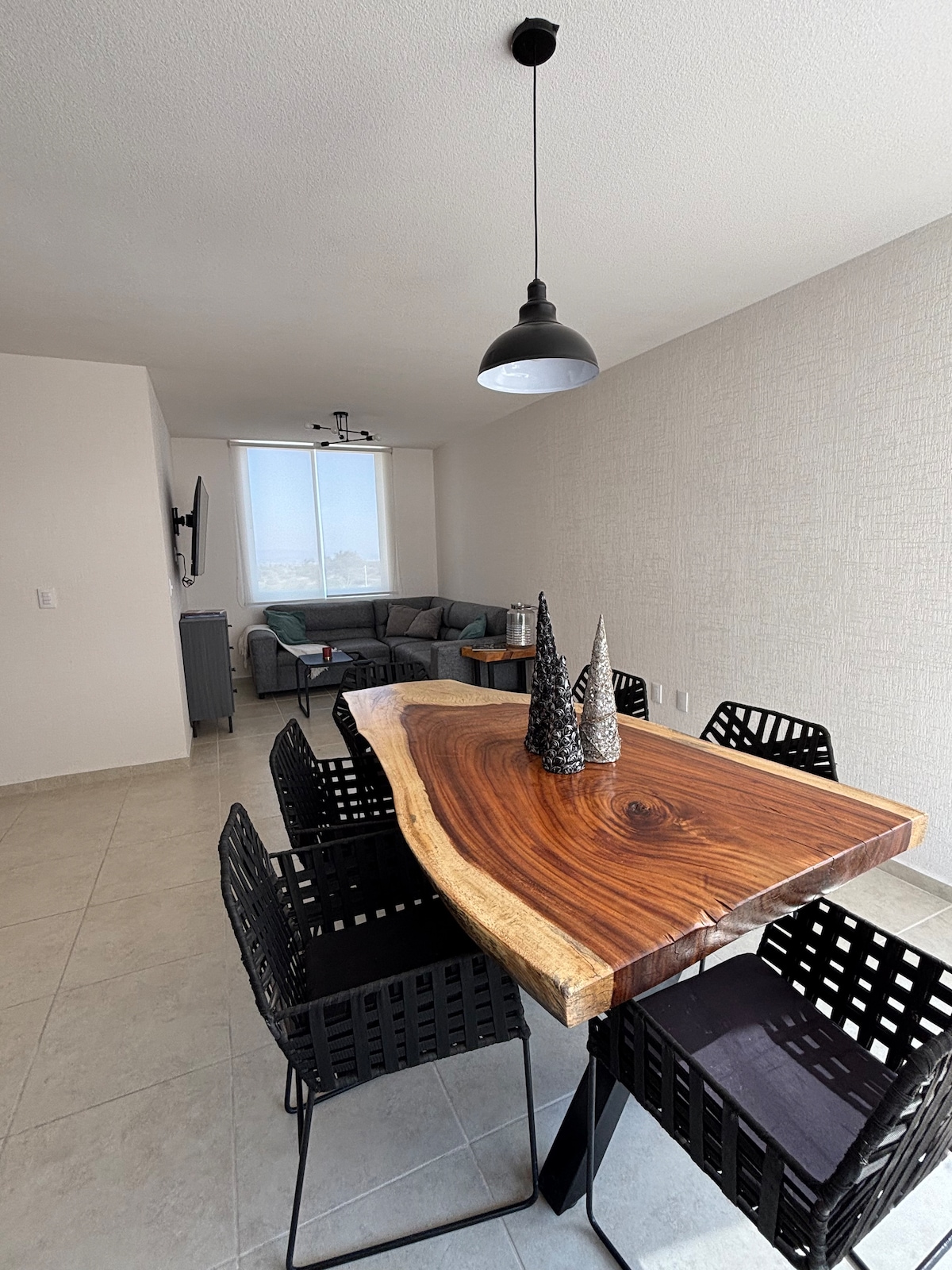 Comfortable and stylish apartment with a cheerful style. It has all the amenities of a luxury apartment such as a pool, roof garden, childrens playroom, business center, private parking, 24/7 vigilance and a gym. Enjoy the new chic area of Querétaro, with the best view of the natural reserve "El Tángano" and of the city. Very close to the bus terminal, the highway to Mexico City and the exit to the International airport. Important to confirm the number of guests.