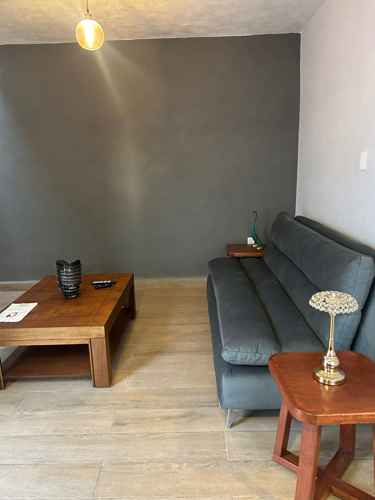 El departamento esta cómodo. Tiene excelente ventilación e iluminación, una decoración linda y moderna. Buscamos que sea el lugar ideal para llegar a descansar. En un cuarto piso y cerca para visitar los viñedos cercanos (puerta de lobo a 25min) o visitar la Peña de Bernal (35 min de distancia). A pesar de estar dentro de la Pradera, Villas del Refugio es un Conjunto habitacional con vigilancia propia y caseta de policía justo en la entrada, todo seguro.