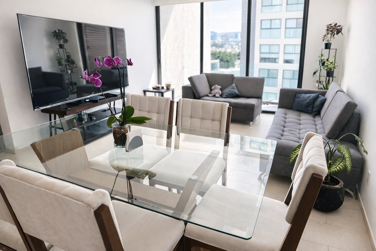 Brand-new, located in the heart of Juriquilla, this 160 m2 apartment offers a one-of-a kind experience, going above and beyond with amenities & entertainment. If you are looking for top quality, look no further and come to the most modern & luxurious apartment in Queretaro for an unforgettable stay Walking distance from Starbucks, Walmart, Bars and top restaurants like Sonora Grill & Hunger, this apartment has it all, comfortable beds, balcony, OLED 4K TVs and a 100" Home-Cinema from your bed