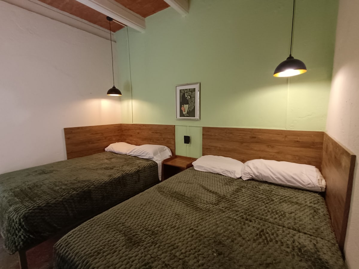 HECHO EN MÉXICO, preparamos este espacio para ti, una habitación amplia y privada con el techo alto, que le da una atmósfera de amplitud. Dispone de un refrigerador y un microondas para preparar y guardar tus alimentos durante tu estancia. El baño esta dentro de la habitación para tu entera privacidad y comodidad. Nos encontramos en zona de restaurantes y pequeños bares, pero si gustas también esta a tan solo 12 min. caminando de las principales atracciones del centro de la ciudad.