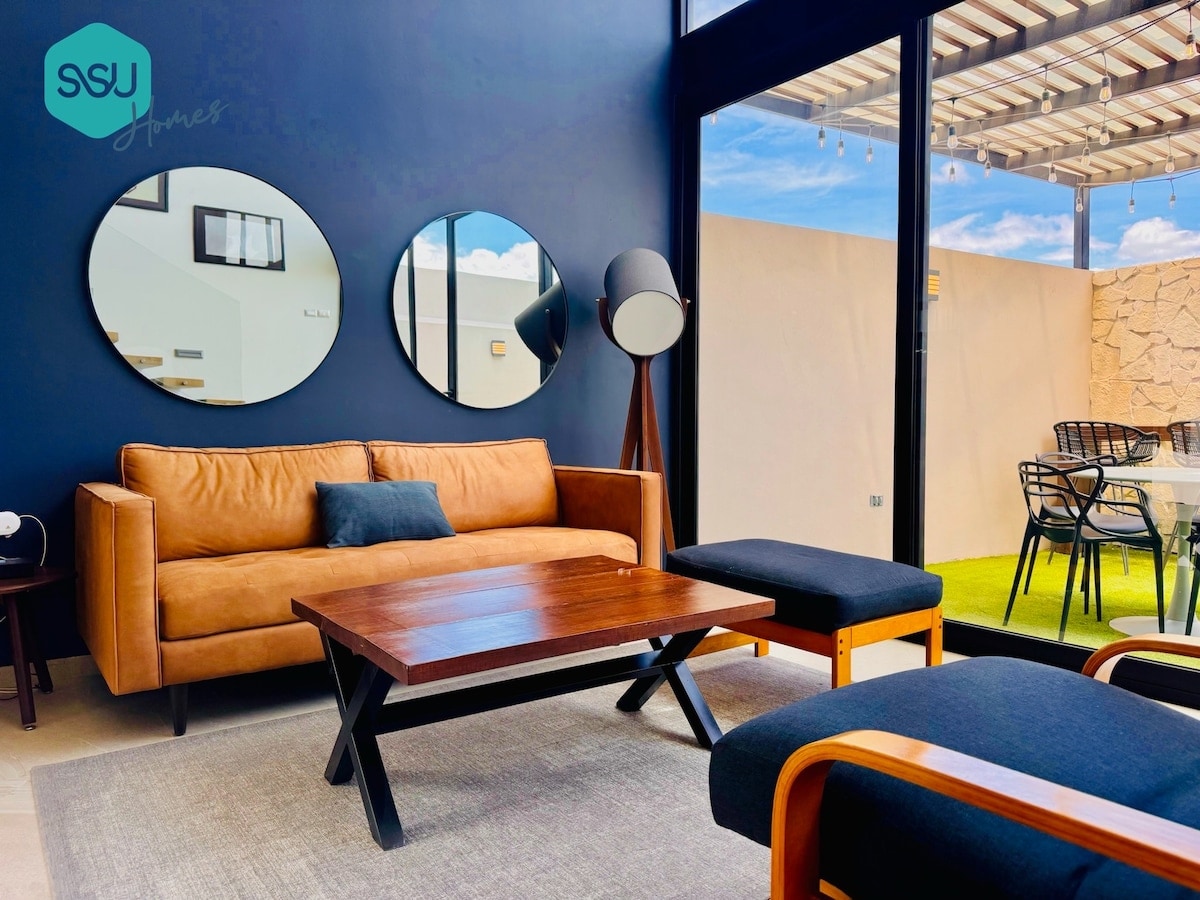 Brand-new, located in the heart of Juriquilla, this 160 m2 apartment offers a one-of-a kind experience, going above and beyond with amenities & entertainment. If you are looking for top quality, look no further and come to the most modern & luxurious apartment in Queretaro for an unforgettable stay Walking distance from Starbucks, Walmart, Bars and top restaurants like Sonora Grill & Hunger, this apartment has it all, comfortable beds, balcony, OLED 4K TVs and a 100" Home-Cinema from your bed