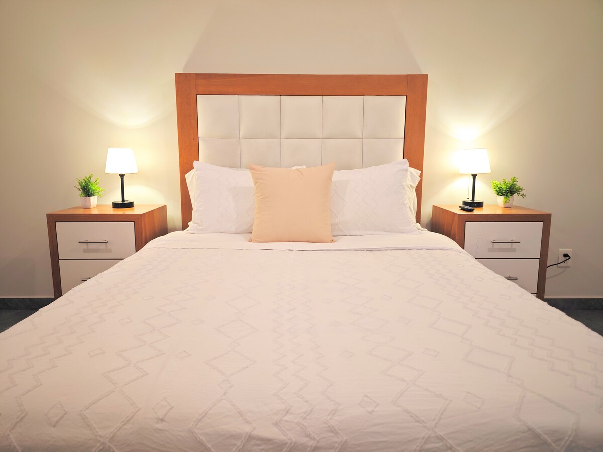 Relájate en este espacio tan tranquilo y elegante. Cuenta con un roof donde puedes convivir con tus acompañantes cuenta con una TV en cada habitación y ventilador de techo. La recamara principal cuenta con cama kingsize y salida al roof. El roof cuenta con TV, mesa con sillas y sala para exteriores tiene iluminación en la noche para tu tranquila convivencia. Cuenta con todo lo necesario, estufa, horno, licuadora, recipiente eléctrico para calentar agua, cubiertos, platos, refrigerador.