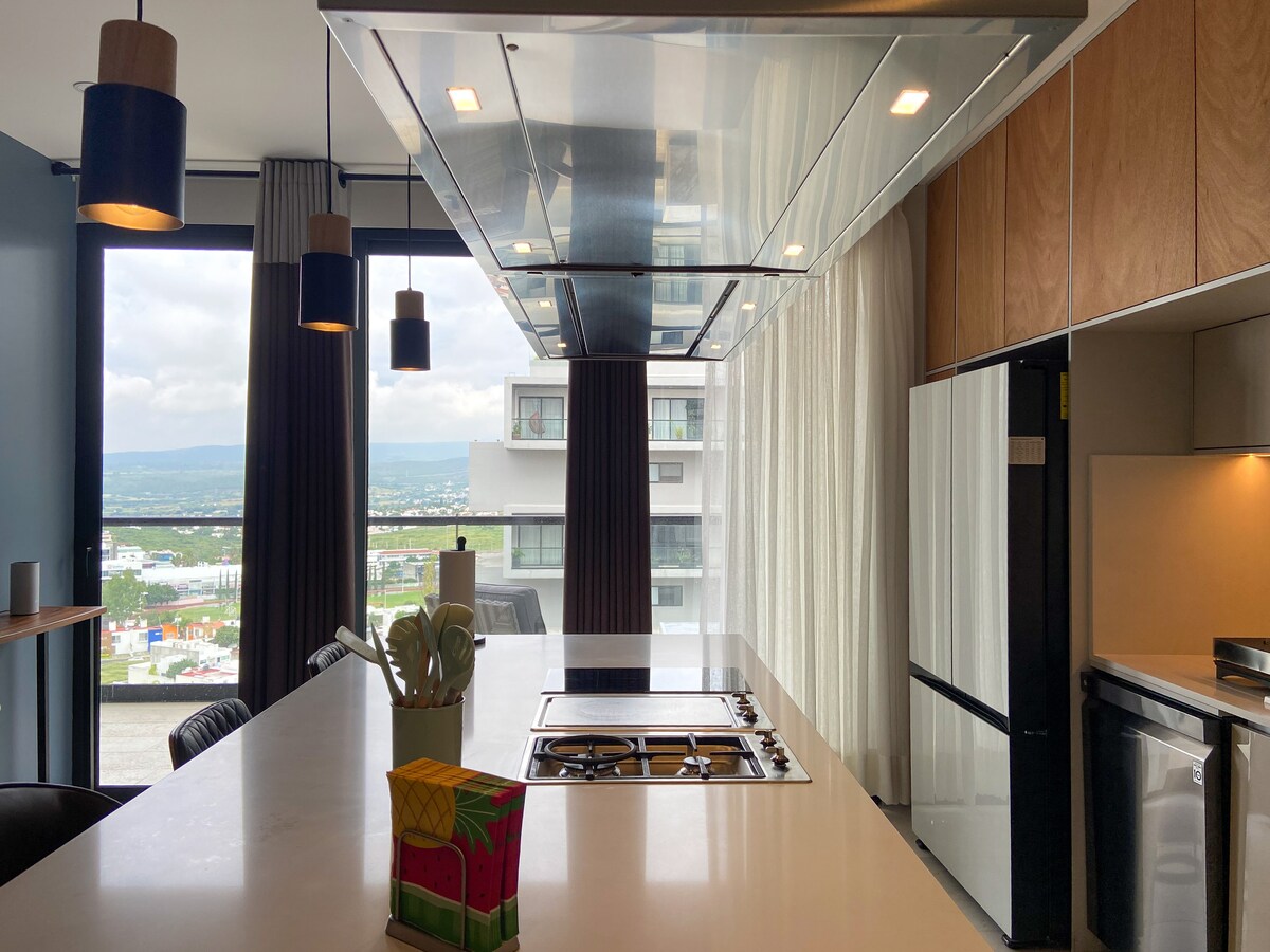 Brand-new, located in the heart of Juriquilla, this 160 m2 apartment offers a one-of-a kind experience, going above and beyond with amenities & entertainment. If you are looking for top quality, look no further and come to the most modern & luxurious apartment in Queretaro for an unforgettable stay Walking distance from Starbucks, Walmart, Bars and top restaurants like Sonora Grill & Hunger, this apartment has it all, comfortable beds, balcony, OLED 4K TVs and a 100" Home-Cinema from your bed