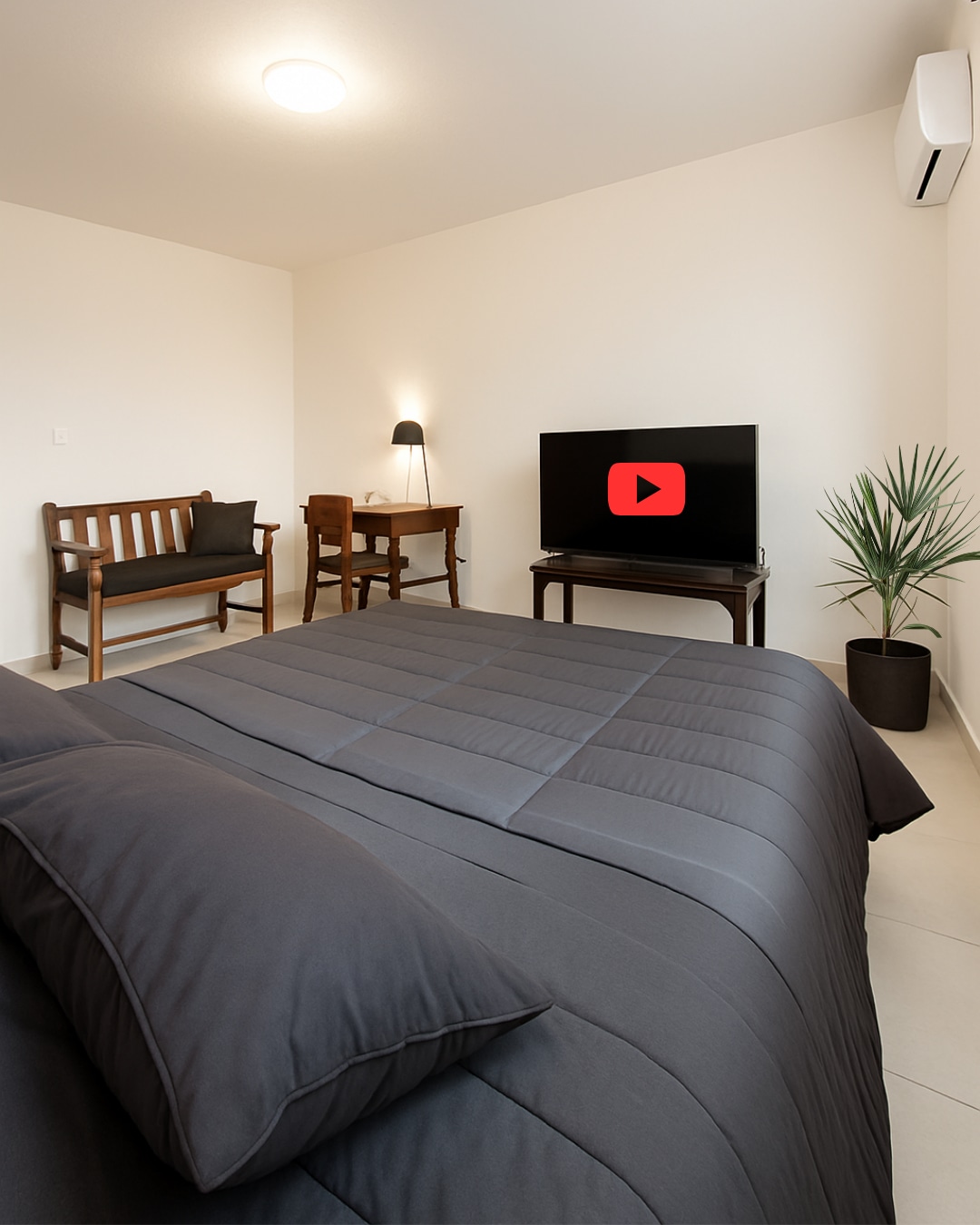 Accommodation for executives or long-stay tourists. It has AC, high speed wifi and a unique design. Excellent option for executives. If your company pays for your stay, ask for our discounts. NOTE: Additional rate after 2 guests.