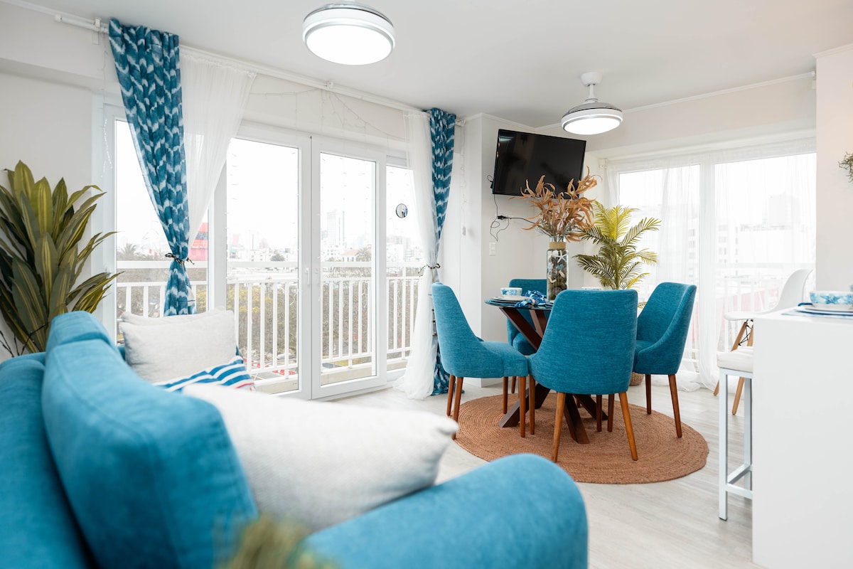 Stay in a LUXURY Apt in the heart of Barranco!🌆✨ This modern 8th-floor apartment is perfect for those seeking comfort. It features a KING bed 🛏️, private bathroom, air conditioning, fully equipped kitchen with airfryer 🍟, Smart TV 🖥️, balcony with partial street view, and high-speed fiber optic Wi-Fi. Just steps from the boardwalk, the new Puente de la Paz, and the MAC.🌊 Perfect for relaxing and exploring the best of Barranco.🤩