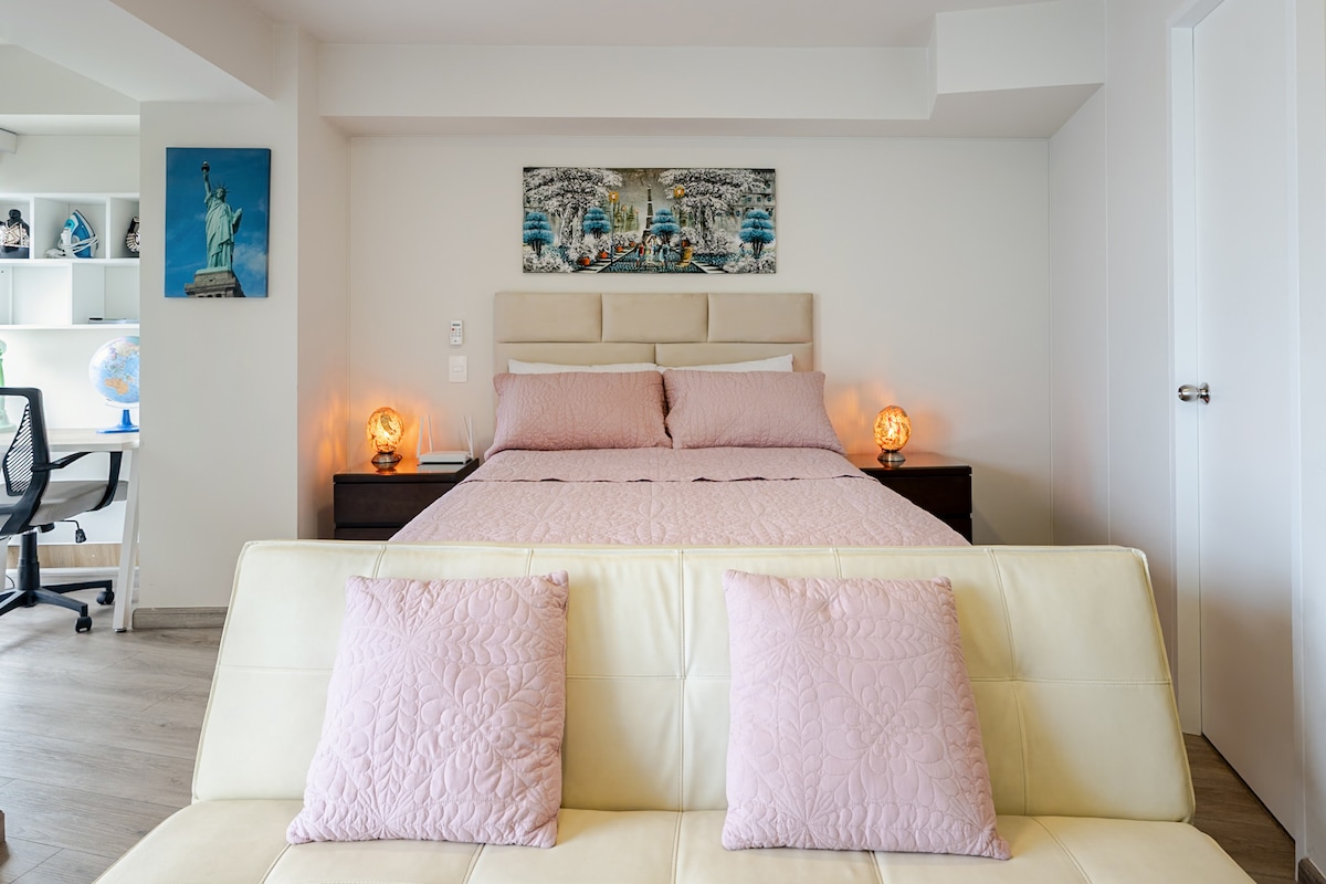 If you’re looking for a safe and exclusive place with a Smart TV and a terrace offering a beautiful city view, Mirania Loft is your best choice! We offer a stylish, modern space with great natural light and a comfortable terrace, located in a central area in the heart of Barranco — the perfect spot to enjoy the best experience during your stay in Lima. The loft is designed for couples, ensuring peace, comfort, and a relaxing atmosphere.