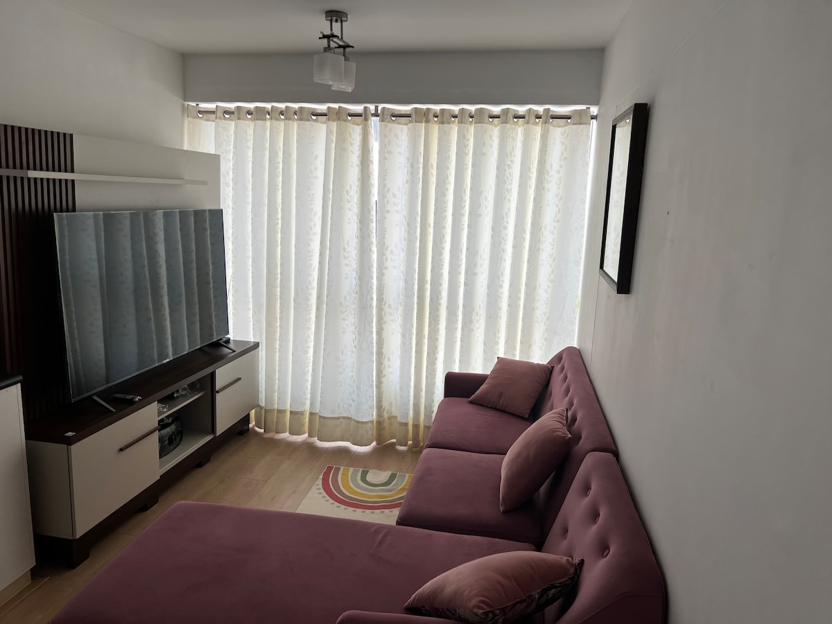 This private loft/studio apartment has a central and strategic position in the tourist and safe district of Miraflores in Lima. It has 1 double bed, 1 single bed and 1 sofa bed. 1 full bathroom with hot water, fully equipped kitchenette, high-speed Wi-Fi, work area, quiet interior view of the city, good lighting and ventilation, 2 elevators, 24/7 concierge, independent entrance, and close to all types of stores of products and services.