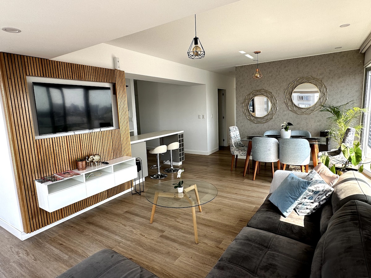 Luxurious Airbnb with breathtaking ocean views, blending modern elegance and ultimate comfort. A block way from the NEW “Puente de la Paz”. Relax in a chic, cozy space with state-of-the-art air conditioning, lightning-fast fiber optic Wi-Fi for remote work, and premium appliances. TOTO toilet. Walking distance from Maido the #1 restaurant in the world (2025) and Central (2023), plus top-tier eateries, artisanal coffee shops, museums, and Larcomar mall.