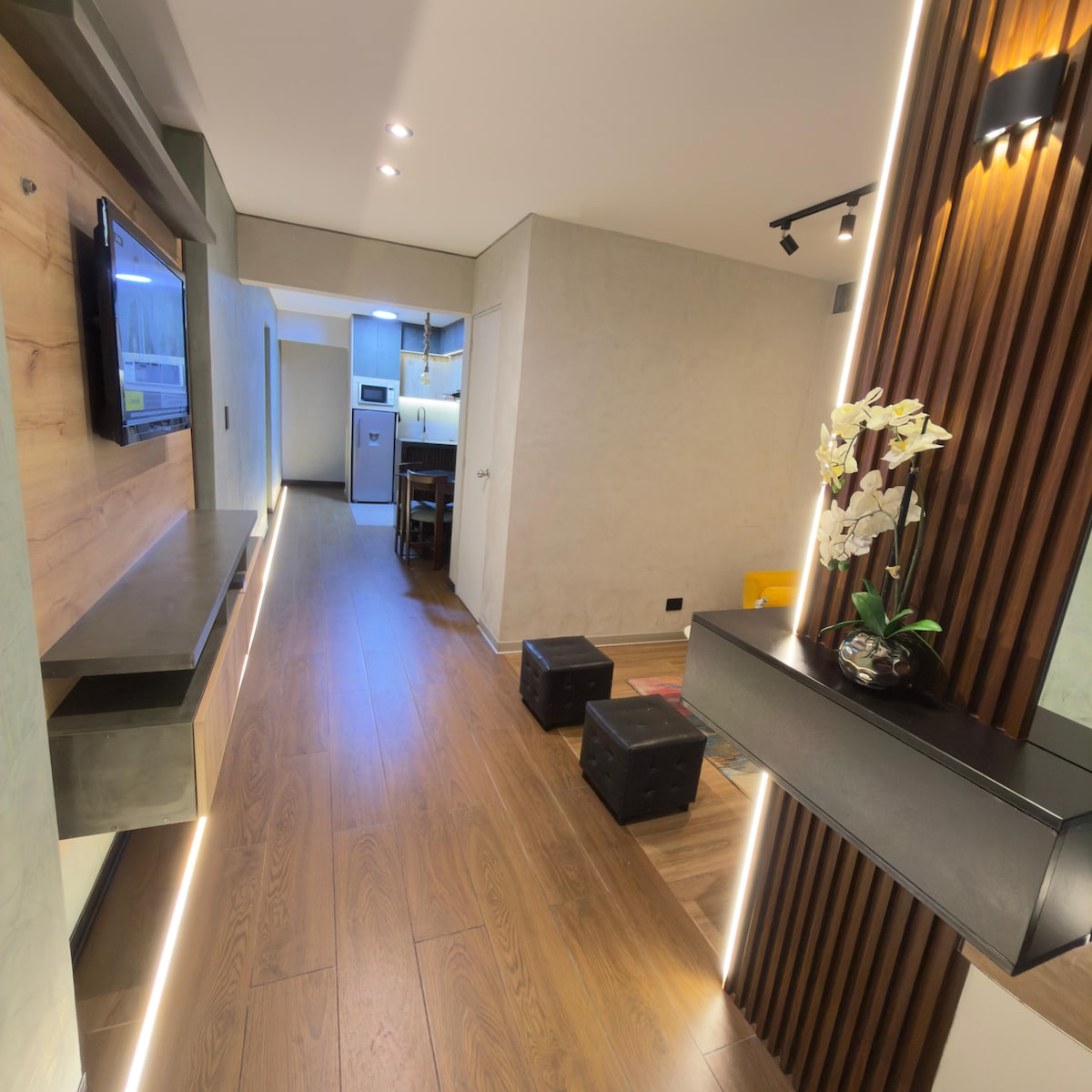 100% beautifully designed by Balance Diseño, located in THE BEST area of Miraflores, Kennedy Park area where you have EVERYTHING by walking distance, Larcomar, best restaurants, super markets, traditional market, handcraft markets, 24hrs groceries and 24hrs food stops! This location also has swimming pool, functional gym, 1 free parking inside the building and excellent connections to the public transport system.
