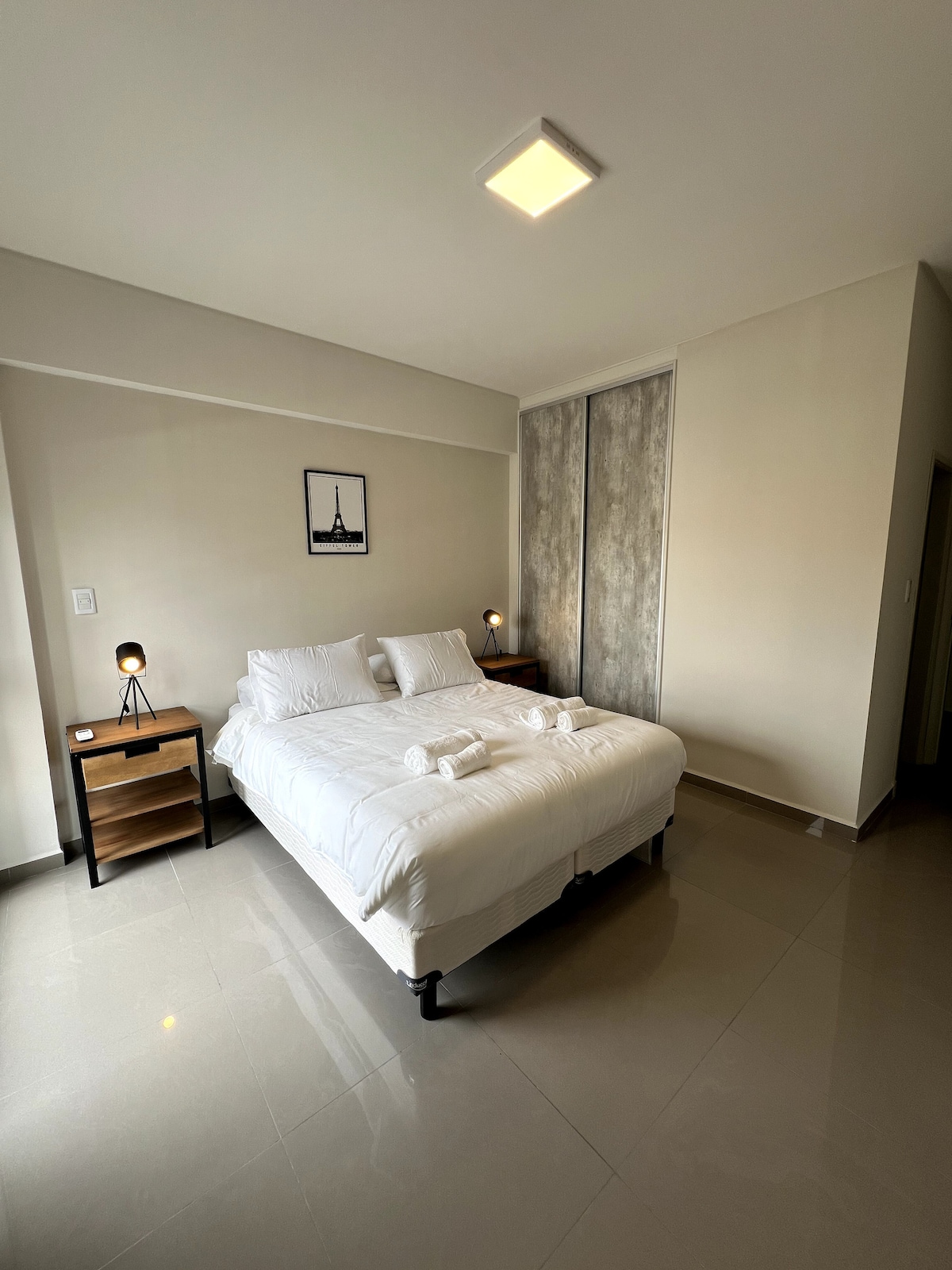 Este lugar único tiene su propio estilo. Contamos con un departamento exclusivo y moderno en piso 14 con vista a toda la ciudad. El mismo está equipado con una cama de dos plazas y una individual con marinera. Cocina, heladera, dos aires acondicionados, licuadora, microondas, sandwichera, desayunador con cafetera nespresso, bodega con vinos, smart tv, todo tipo de vajilla. Piscina, cochera privada: solo para autos y motos, no para camionetas pick up por ej amarok, hilux, etc) seguridad las 24hs