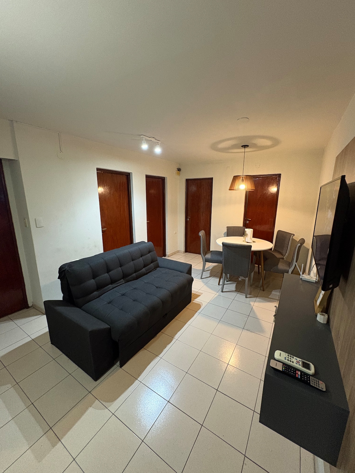 Exelente Ubicacion, a pocas cuadras de la Plaza Principal, en Pleno Centro. Cochera para UN vehiculo incluida, con porton automatico. Disfrutá de la sencillez de este alojamiento tranquilo y céntrico. Completamente Amoblado. Una Habitacion con cama matrimonial, living con sofa cama. Un Baño completo. Cocina comedor completamente equipada. Smar TV. Servicios Incluidos (Luz, Agua, Gas Natural e Internet Fibra Optica 100 Megas). Ropa de cama y Juego de toallas. Ambientes Climatizados.